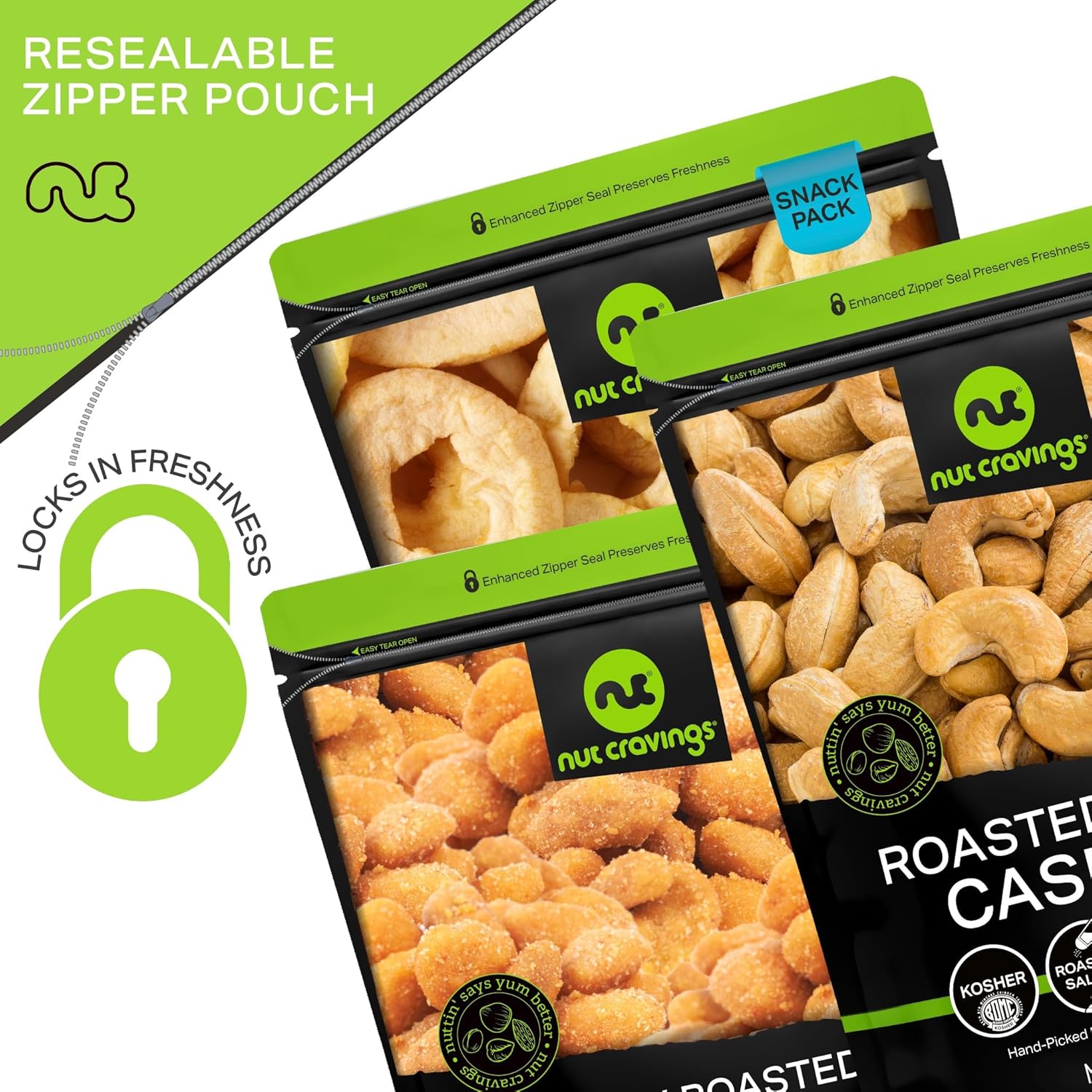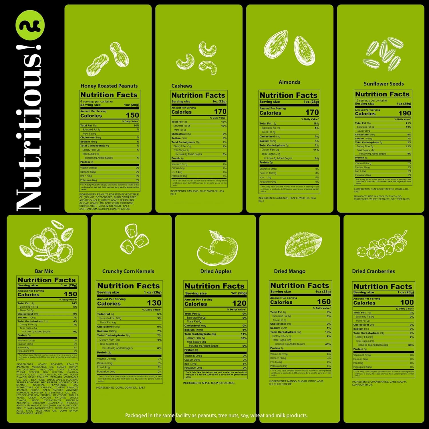 - MEGA BUNDLE WITH 6 BAGS OF OUR SIGNATURE SNACKS: Our 6-bag Mega Bundle Gift Basket includes 6 bags, each of them filled with one of these delicious snacks: Honey Roasted Peanuts, Roasted & Salted Sunflower Seeds, Roasted & Salted Almonds, Roasted & Salted Corn Nuts, Roasted & Salted Cashews, Bar Pretzel Mix, Dried Mango Strips, Dried Apple Rings, Dried Craisins!