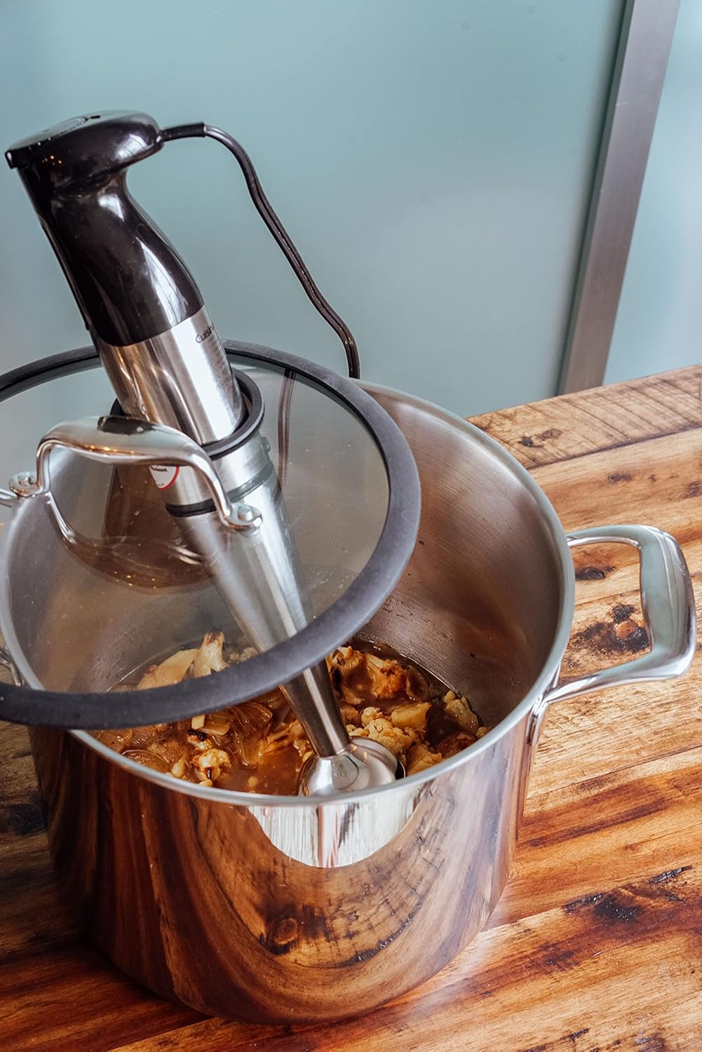 - Silicone-rimmed tempered glass lid with removable stainless steel stopper and silicone-rimmed sous vide adapter helps limit water evaporation