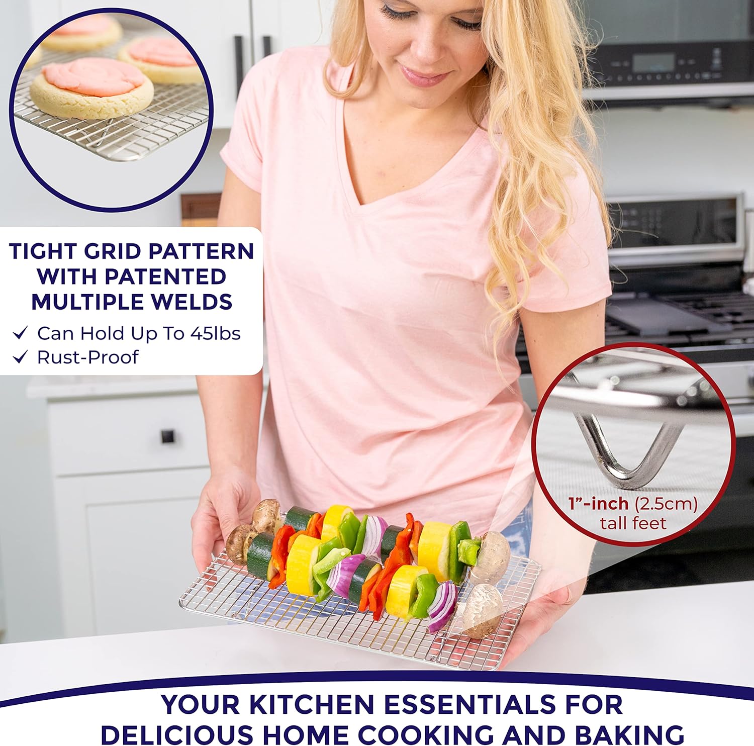 - Lifetime Assurance & Downloadable Recipe e-Book Included: For questions or concerns about your baking rack for oven cooking, just click on the Kitchenatics name on our listing followed by the "Ask a Question" button for support.