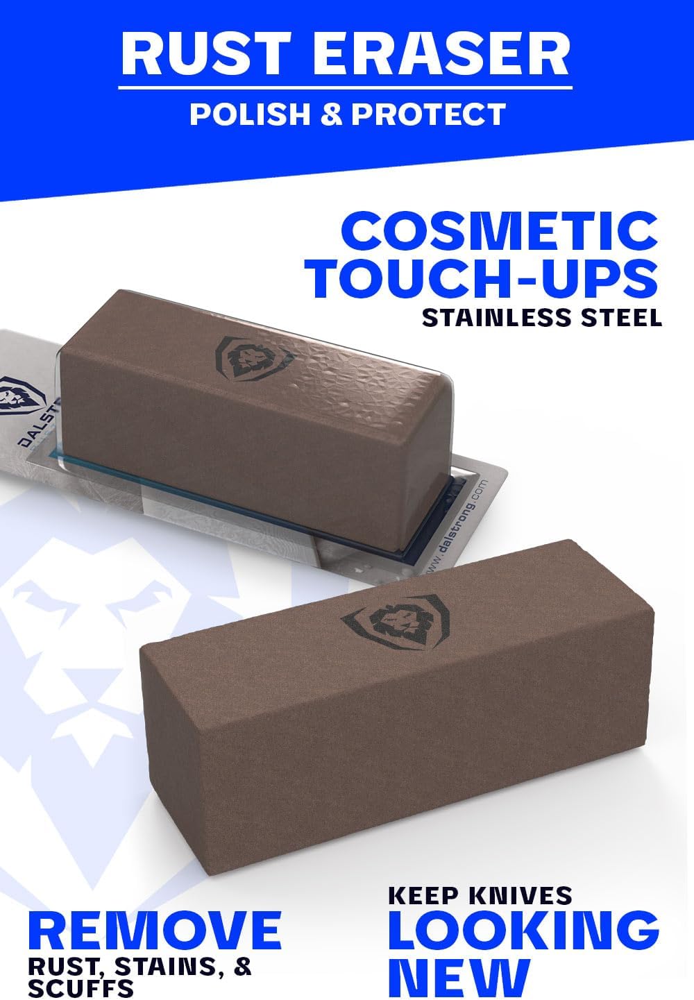 - Unrivaled Performance: For quick cosmetic touch-ups to the surface or face of your knife, bladed tool, the Dalstrong Rust Eraser can be used to rub away and clean any unsightly corrosion or scuffs, keeping your items looking new and hygienic.
