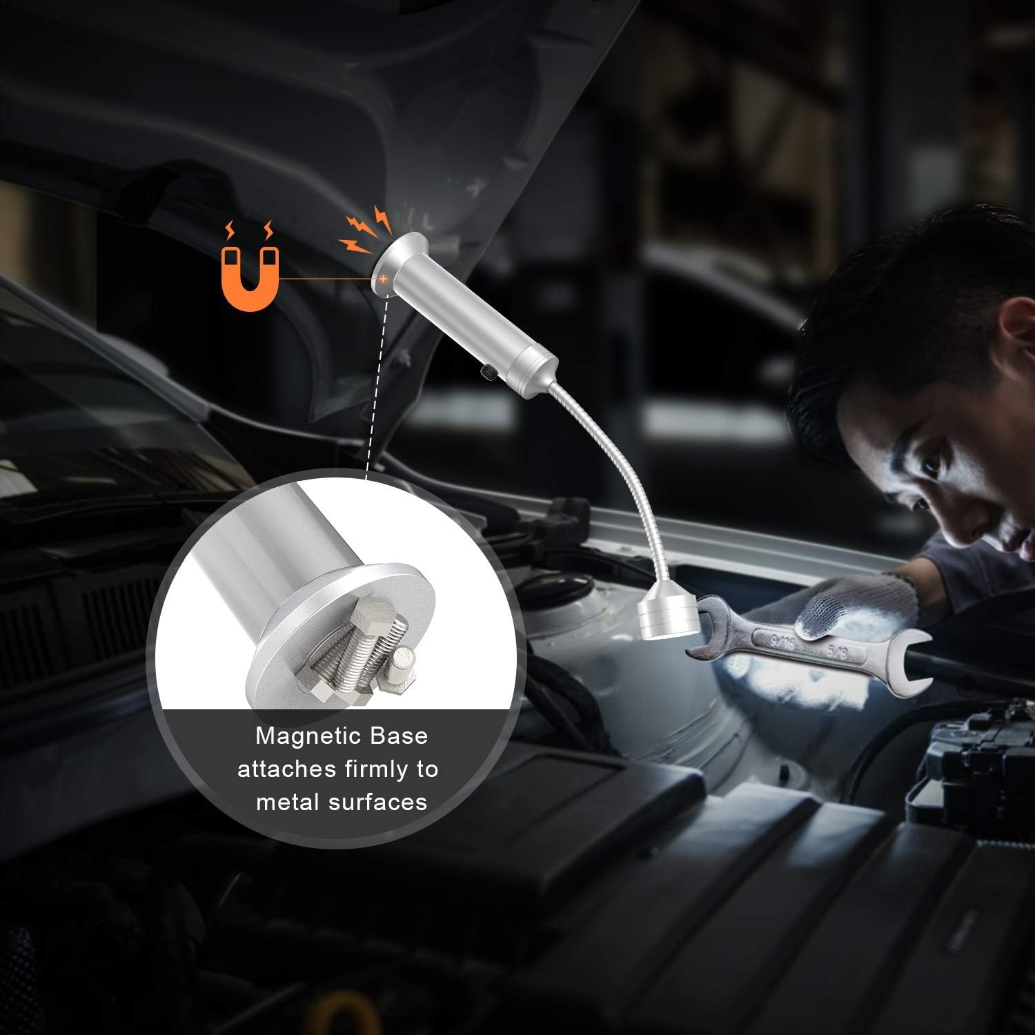 - 【FLEXIBLE GOOSENECK】The 11cm flexible gooseneck can adjust 360 degrees, enabling you to orient the light's beam to exactly where you need it and illuminate every inch of your grill surface