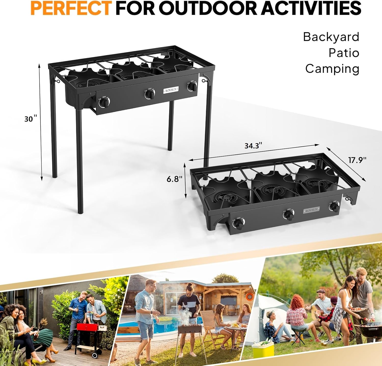 ROVSUN 3 Burner Propane Gas Stove, 225,000 BTU High Pressure Outdoor Camping Burner with CSA Listed Regulator, Picnic Cooker Perfect for Home Brewing Maple Syrup Patio Turkey Frying Canning