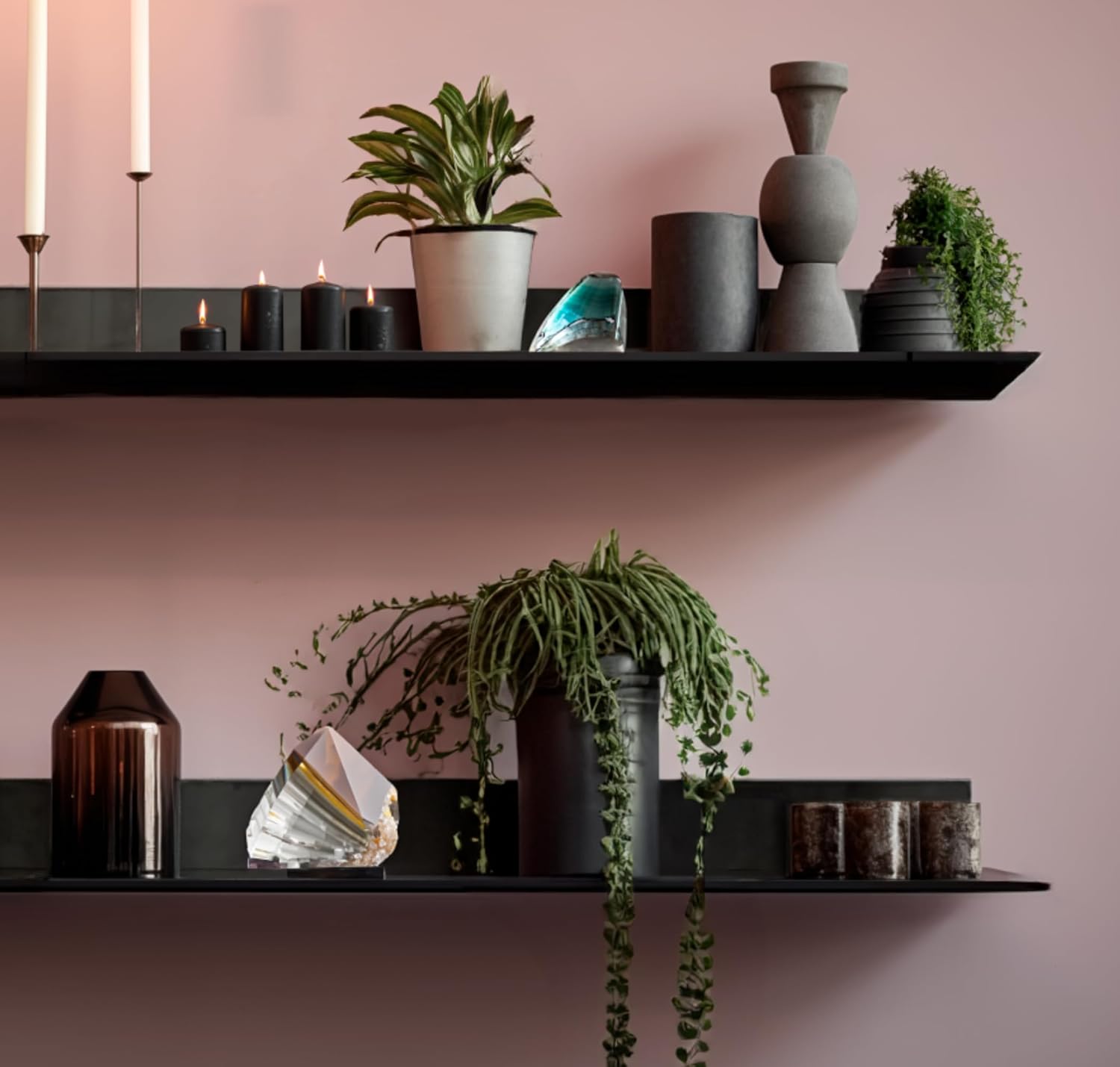 - DIMENSIONS & DETAILS: Measuring 48-inches long x 8-inches in depth, our steel floating shelf is made from 14 gauge raw steel and professionally powder coated matte black. The weight of the shelf is 10.25 LBS. It's perfect for displaying books, plants, bottles, picture ledges, and retail displays