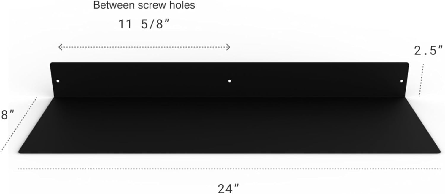 - DIMENSIONS & DETAILS: Measuring 24-inches long x 8-inches in depth, our steel floating shelf is made from 14 gauge raw steel and professionally powder coated matte black. The weight of the shelf is 5 LBS. It's perfect for displaying books, plants, bottles, picture ledges, and retail displays