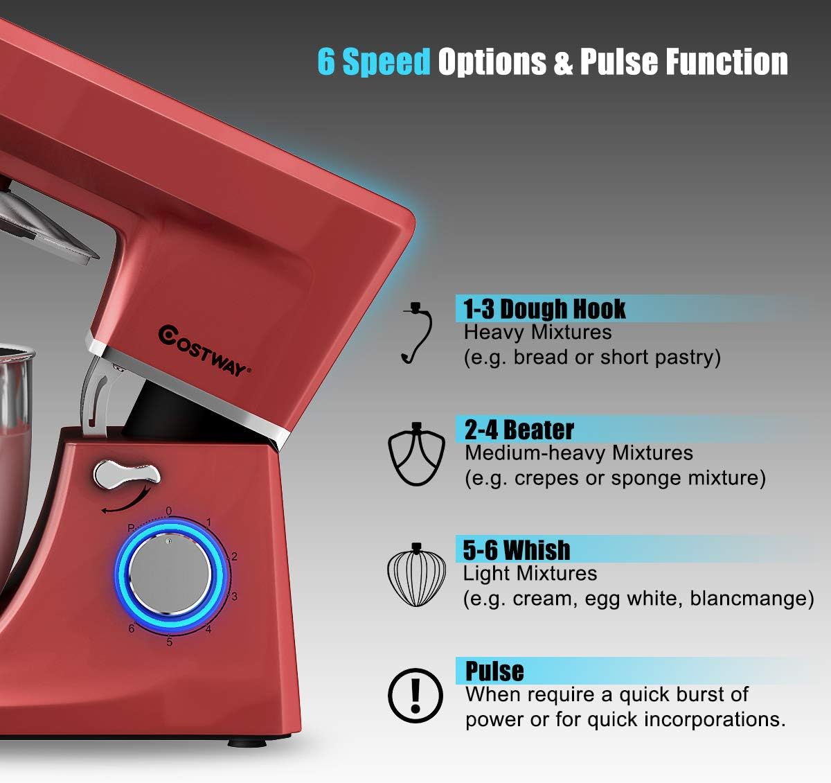 COSTWAY Stand Mixer, 6-Speed 7.5 QT Tilt-head Electric Kitchen Food Mixer 660W with Stainless Steel Bowl, Dough Hook, Beater, Whisk