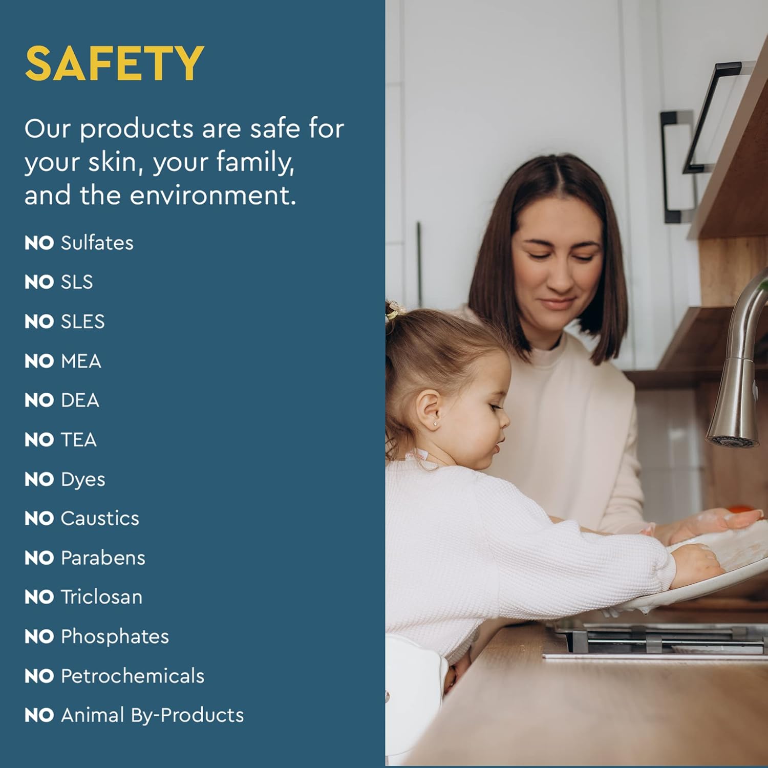 - NO SKIN DAMAGING CHEMICALS: No sulfates (SLS, SLES, SCS), triclosan, parabens, petrochemicals, animal by-products, perfumes, or caustic ingredients that dry out and irritate your skin