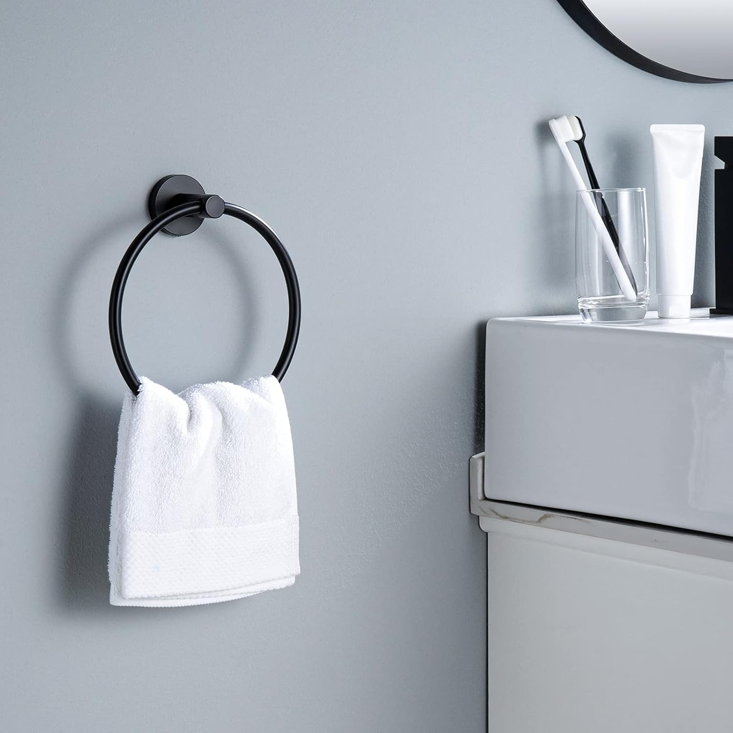 - PACKAGE INCLUDES: 1 x Matte Black Towel Ring, 1 x Hardware Pack (for screw-mount installation), Installation Instructions.