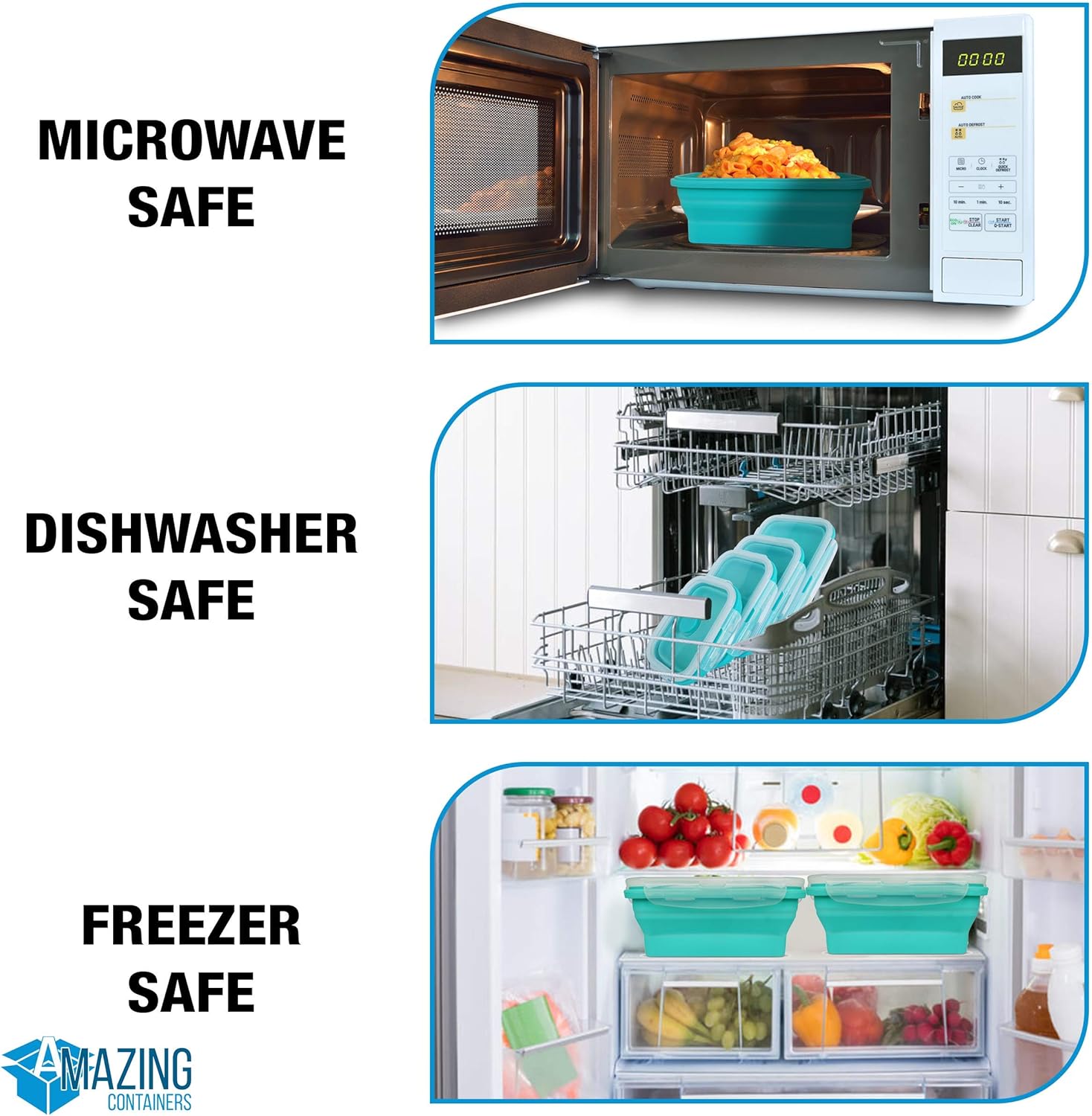 AMAZING CONTAINERS™ Collapsible Silicone Food Storage Container Set of 4 with Lids | Stackable | Microwaveable | Freezer, Dishwasher Safe| BPA Free