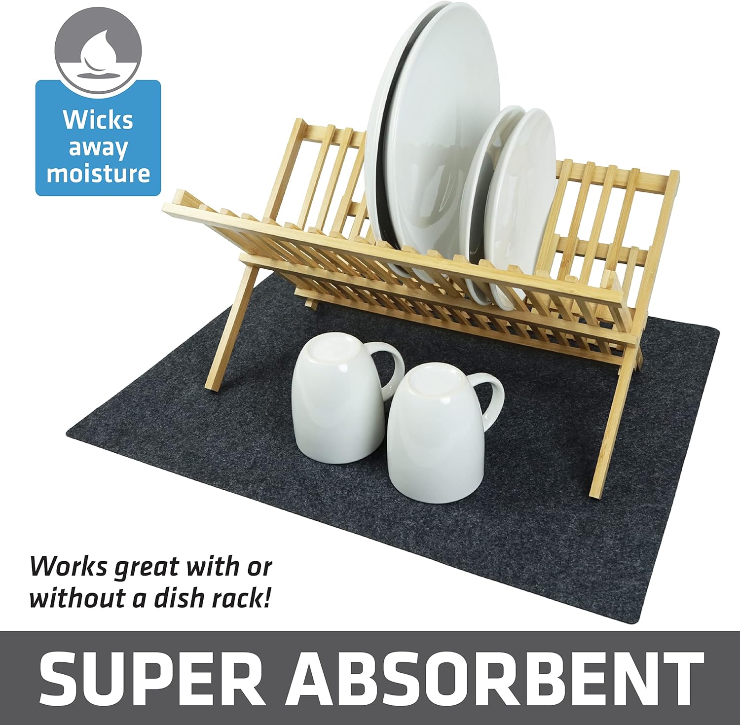 - (XL SIZE) KEEPS COUNTERTOPS CLEAN AND DRY (PREMIUM LOW-PROFILE DESIGN): The low-profile design (0.13” thick), adds stability when drying stemware or other delicate items and allows moisture to evaporate quickly. The XL size is great for air-drying dishes, glasses, silverware, pots, pans, and fruits and vegetables.