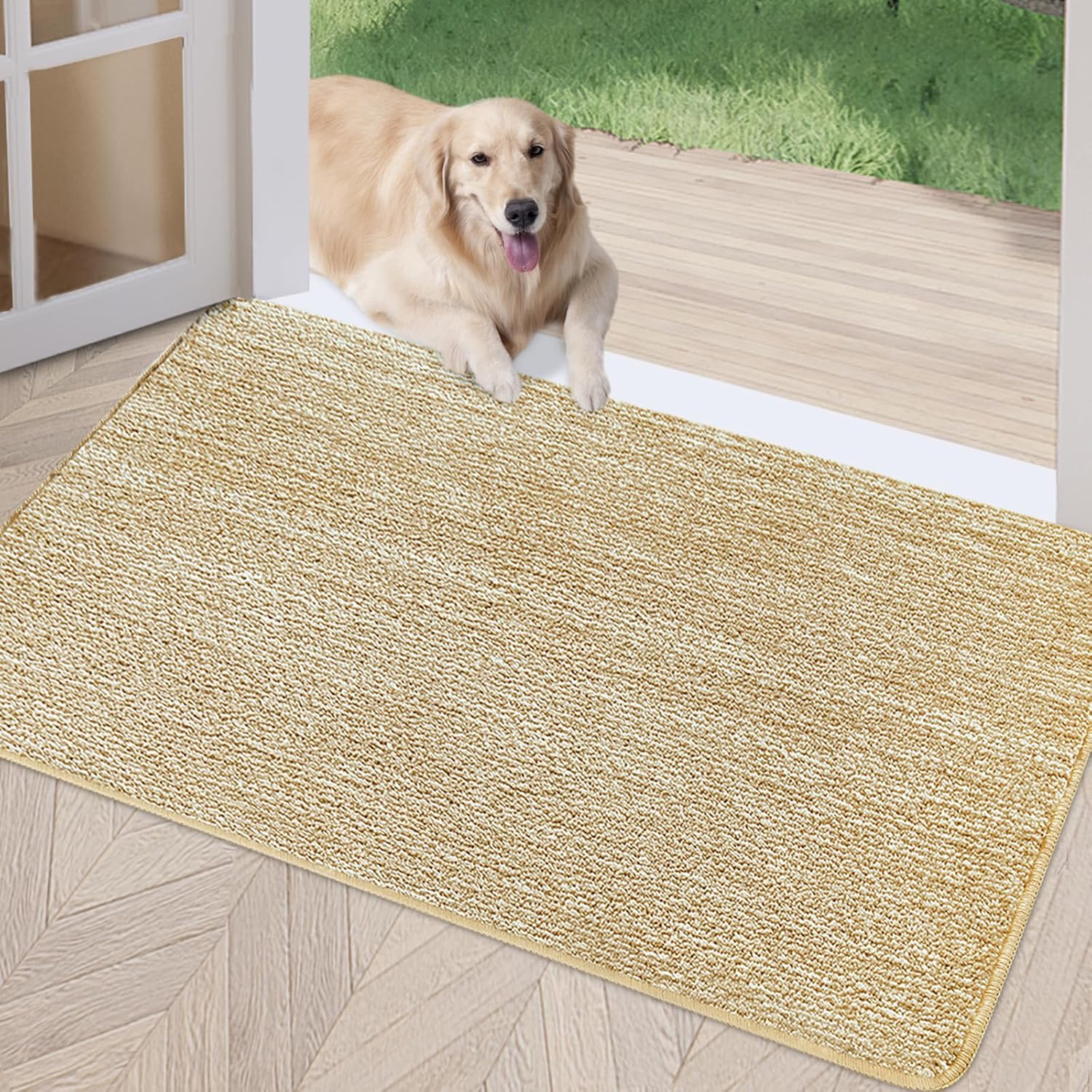 REFETONE Indoor Doormat, Front Door Mat 24"x36" Absorbent Rubber Backing Non Slip Back Door Mats, Washable Low-Profile Inside Floor Mat Door Rugs for Entryway, Resist Dirt Mud Mat for Dogs, Brown