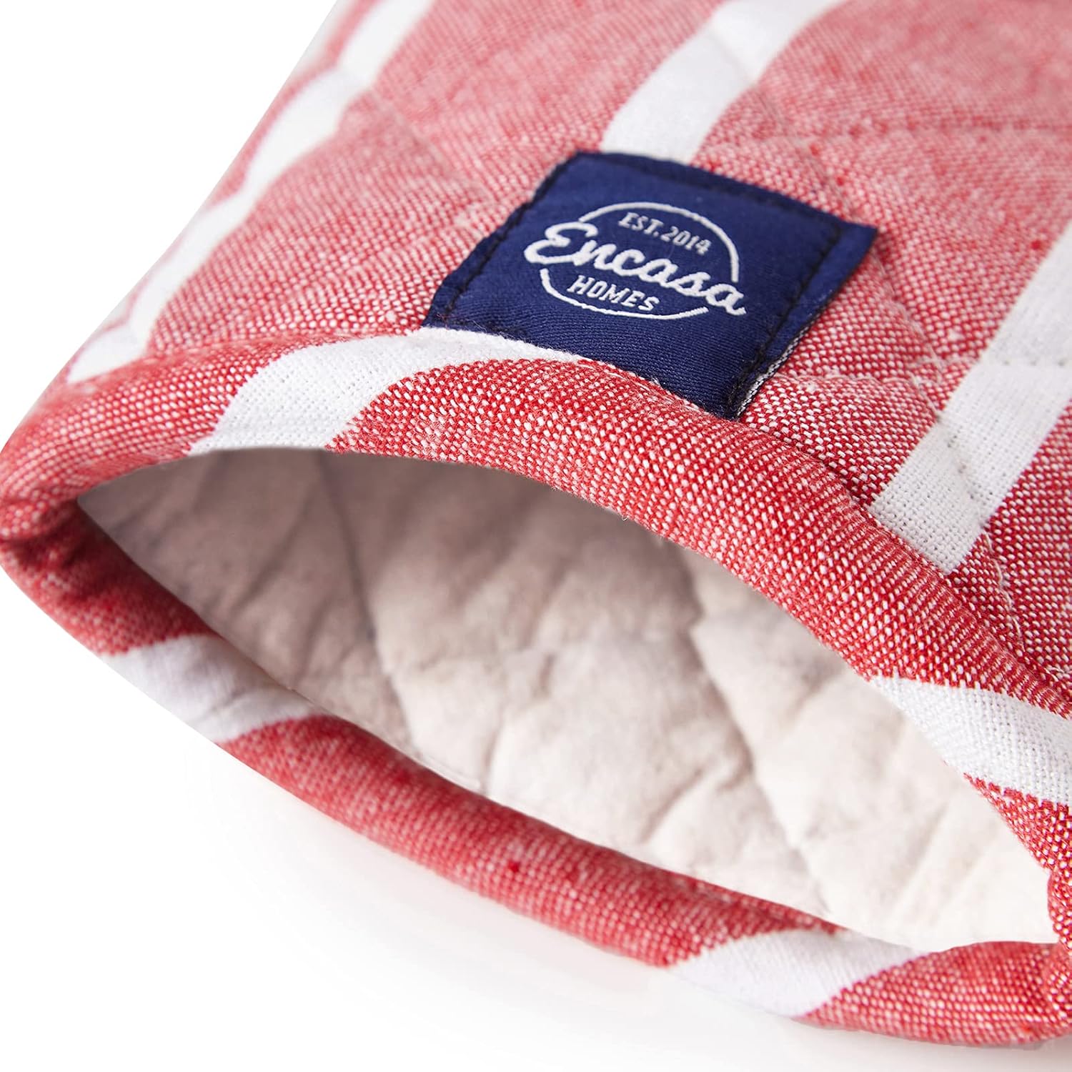 Encasa XO Long 12"x7" Oven Microwave Hand Gloves Mitts (2 pc Set) for Kitchen Cooking & Baking - Heat Resistant, Thick & Safe, Protection of Hands from Hot Utensils - Roma Red Stripes