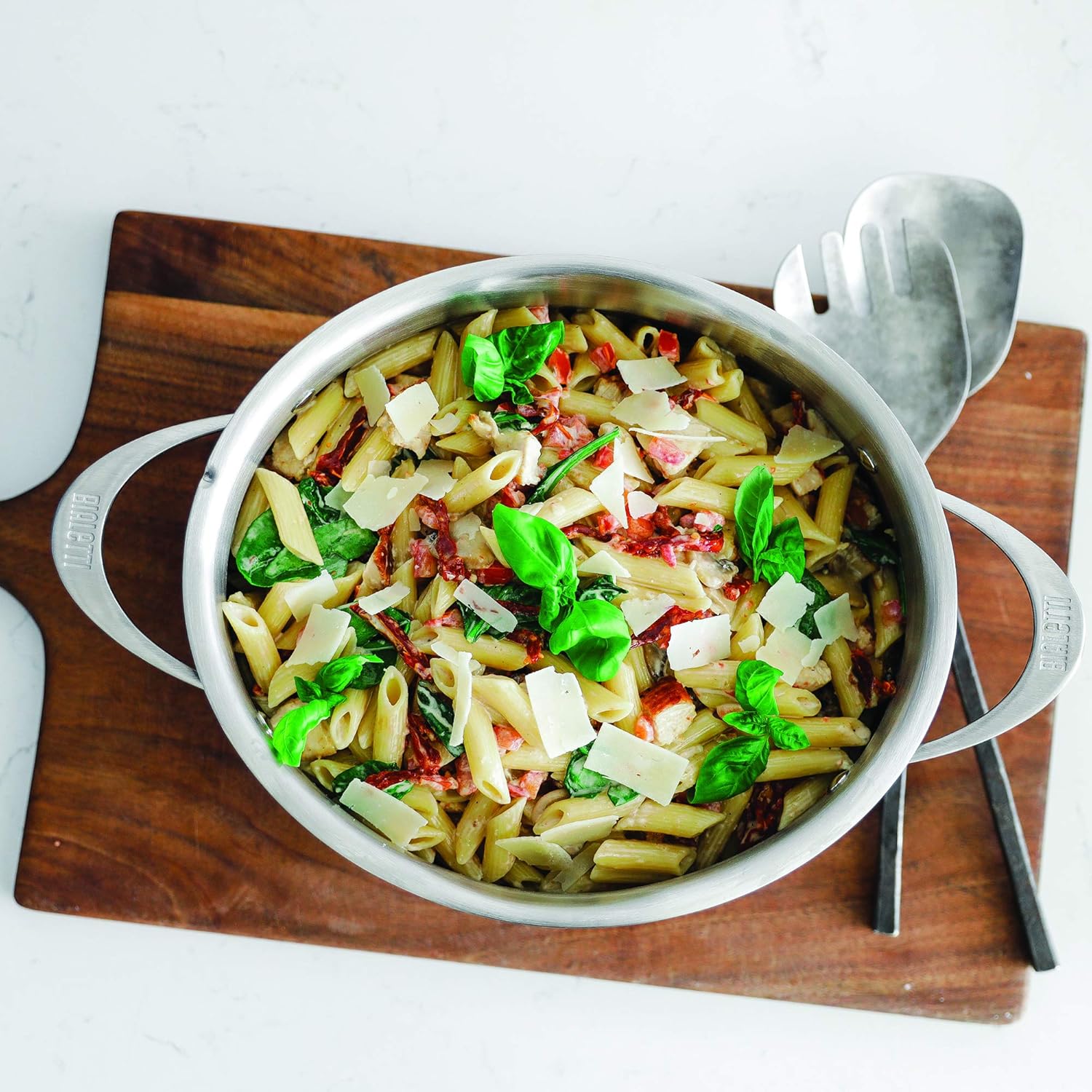 Bialetti 6-Quart Nonstick Aluminum Pasta Pot with Strainer Lid and Handles, PFOA-Free Nonstick Oval Cooking Pot and Lid, Silver