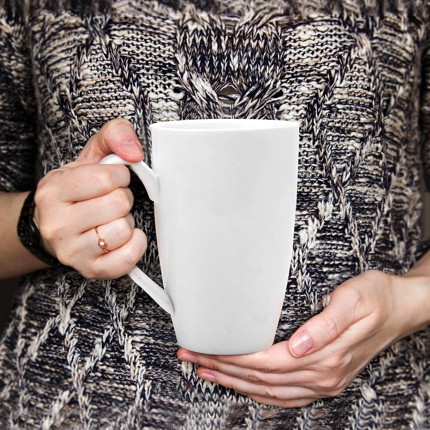 - [Multi-purpose]-2-pack 16 ounce porcelain tea mug. Perfect for drinking coffee, tea, hot cocoa and other heated beverages, reusable coffee or tea cups. Suitable for home use, office use, food service, etc.