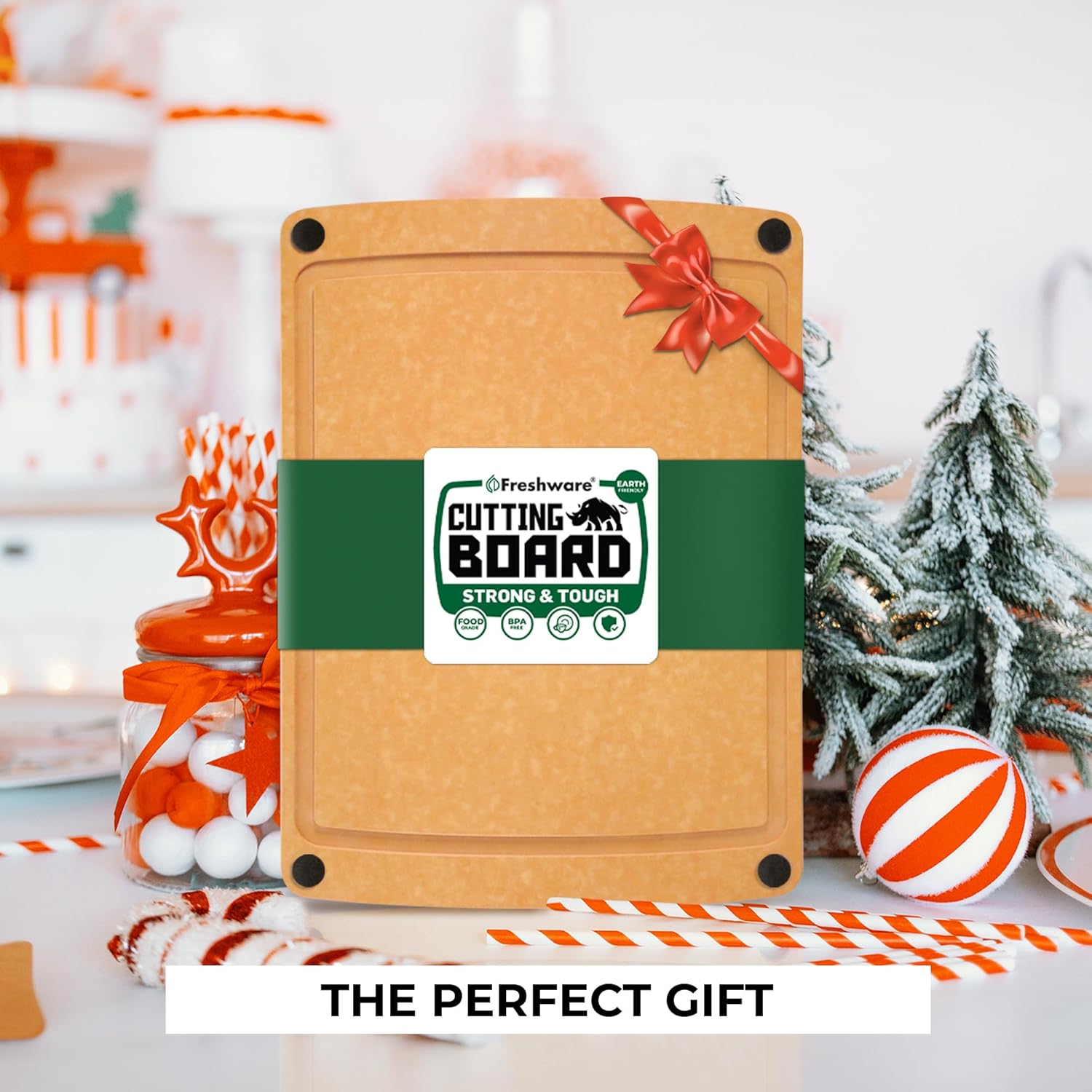- Easy To Clean and Dishwasher Safe: Large 14.6" x 11" wood fiber cutting board, wooden natural color, juice groove, non-slip silicone feet, dual-sided cutting surface. If you are looking for a crafted wood cutting board that is extremely safe to use, then we got you covered. BPA-free, dishwasher safe, Freshware wood cutting boards provide a clean food prep surface for every meal.