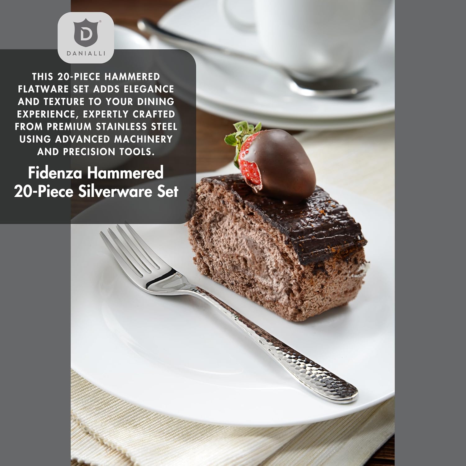 Hammered Silverware Set | Premium 18/10 Stainless Steel Flatware Service for 4 | Heavy-Duty & Dishwasher Safe | Built to Last (20-Piece, Fidenza Hammered)