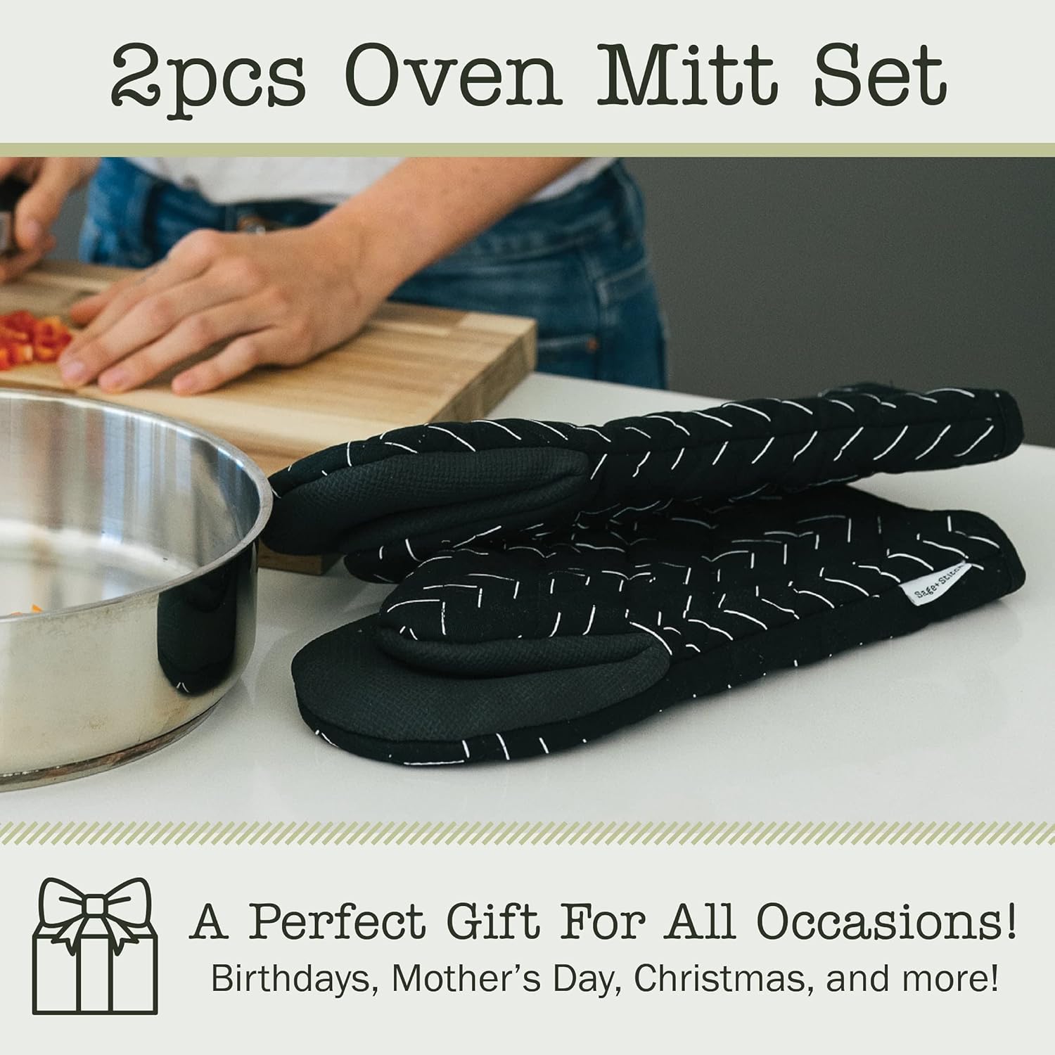 - Designed with You in Mind: Each Sage and Stitch Heat Resistant Designer Kitchen Oven Mitt set has a unique pattern so that you can stand out in your kitchen. Now you can toss away those plain black oven mitts and use something that fits your unique style! No matter your taste, our extra large oven mitts are designed with you in mind!