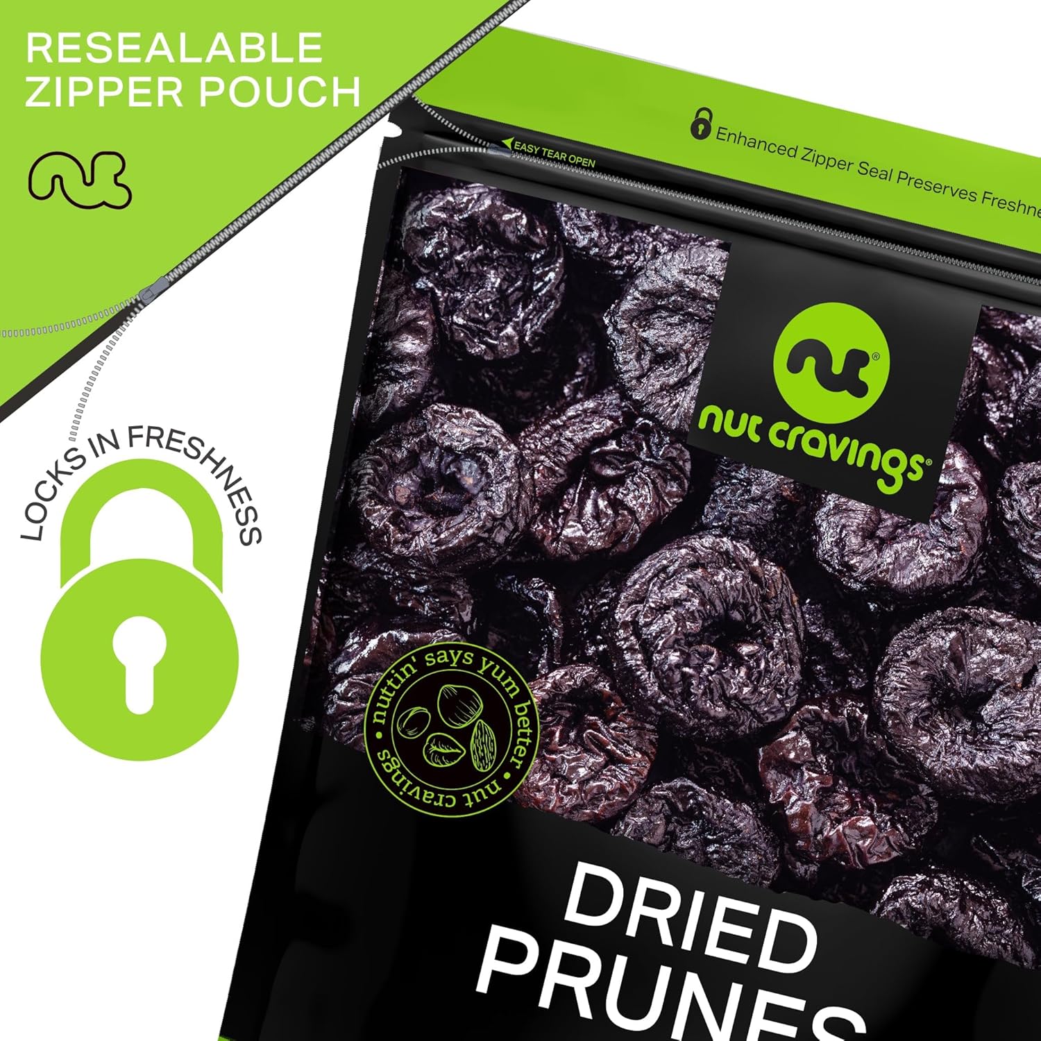 NUT CRAVINGS - Dried Prunes Pitted Unsweetened, Dry Plums No Sugar Added (16oz, 1 LB) Bulk Dry Fruits Packed Fresh in Resealable Bag - Sweet Healthy Snack, Naturally Grown, Vegan, Kosher