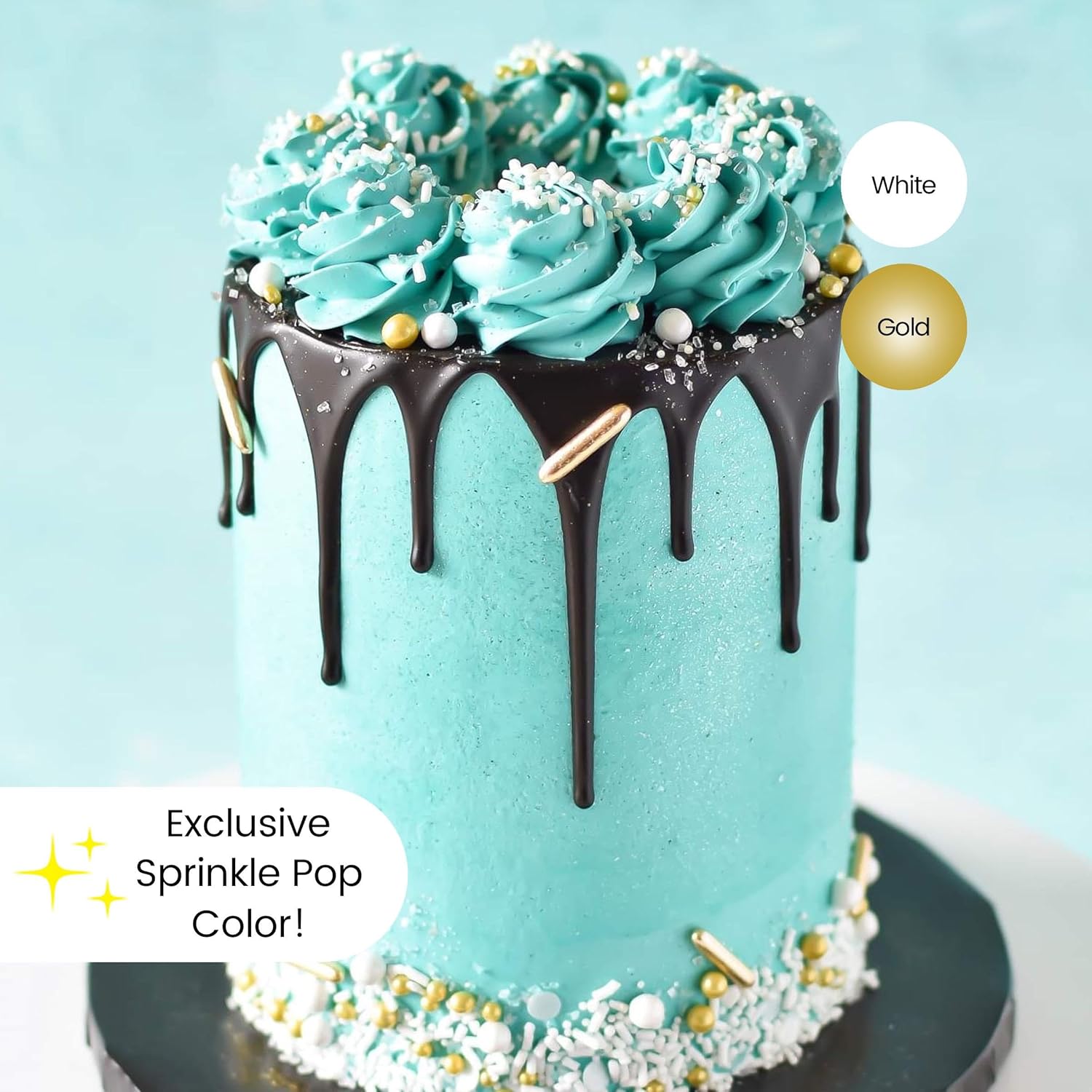 Wedding White Sprinkle Mix| Made In USA By Sprinkle Pop| Pastel White Sprinkles With Gold Metallics Dragees| Sprinkles For Decorating Bridal Shower Wedding Anniversary Party Cupcakes Cake Cookies, 2oz