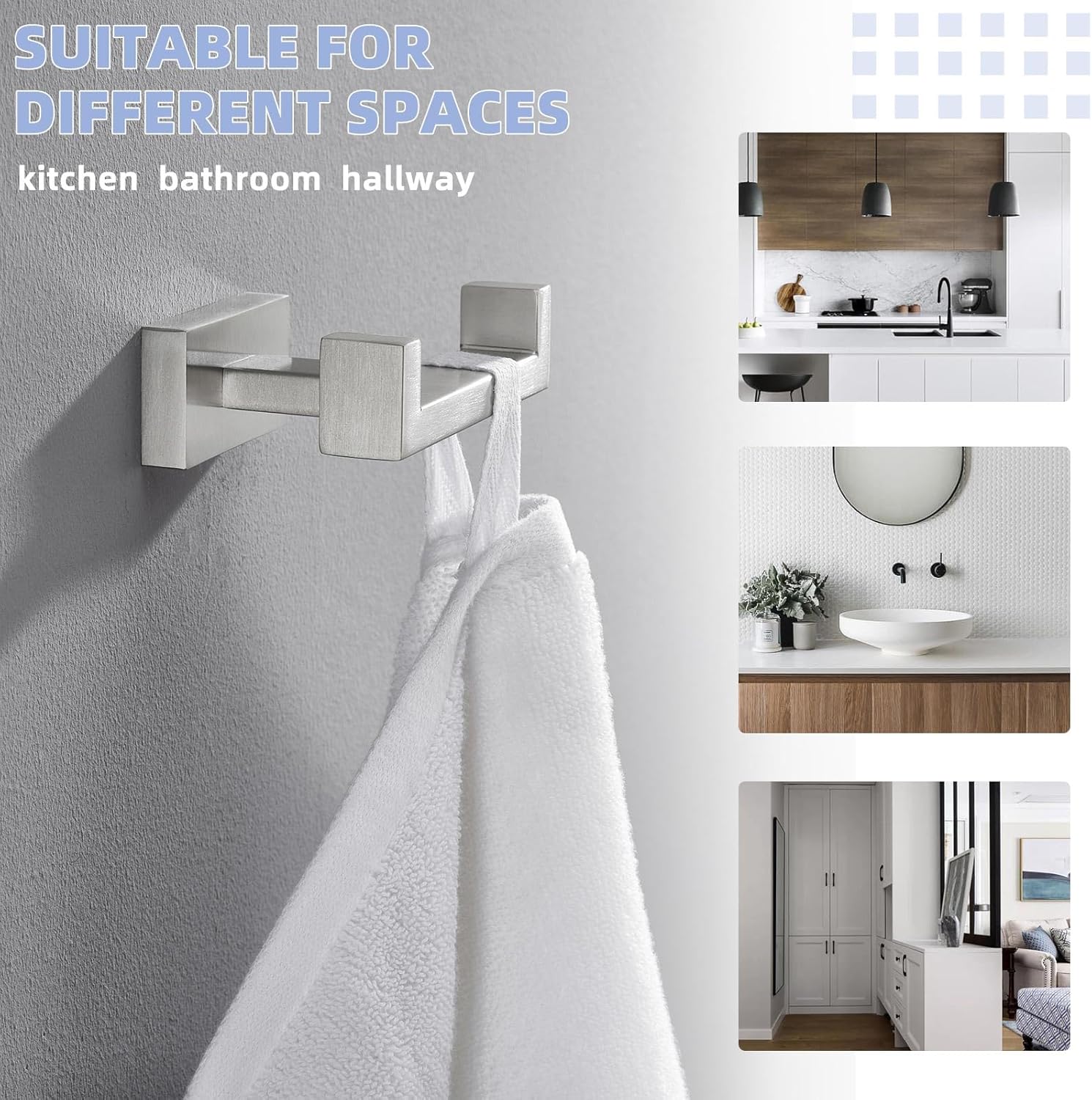 - CONVENIENT WIDE HOOK: wide square hook makes hang up towels easier compared to the rounded one, handles a good amount of weight without accidentally falling off