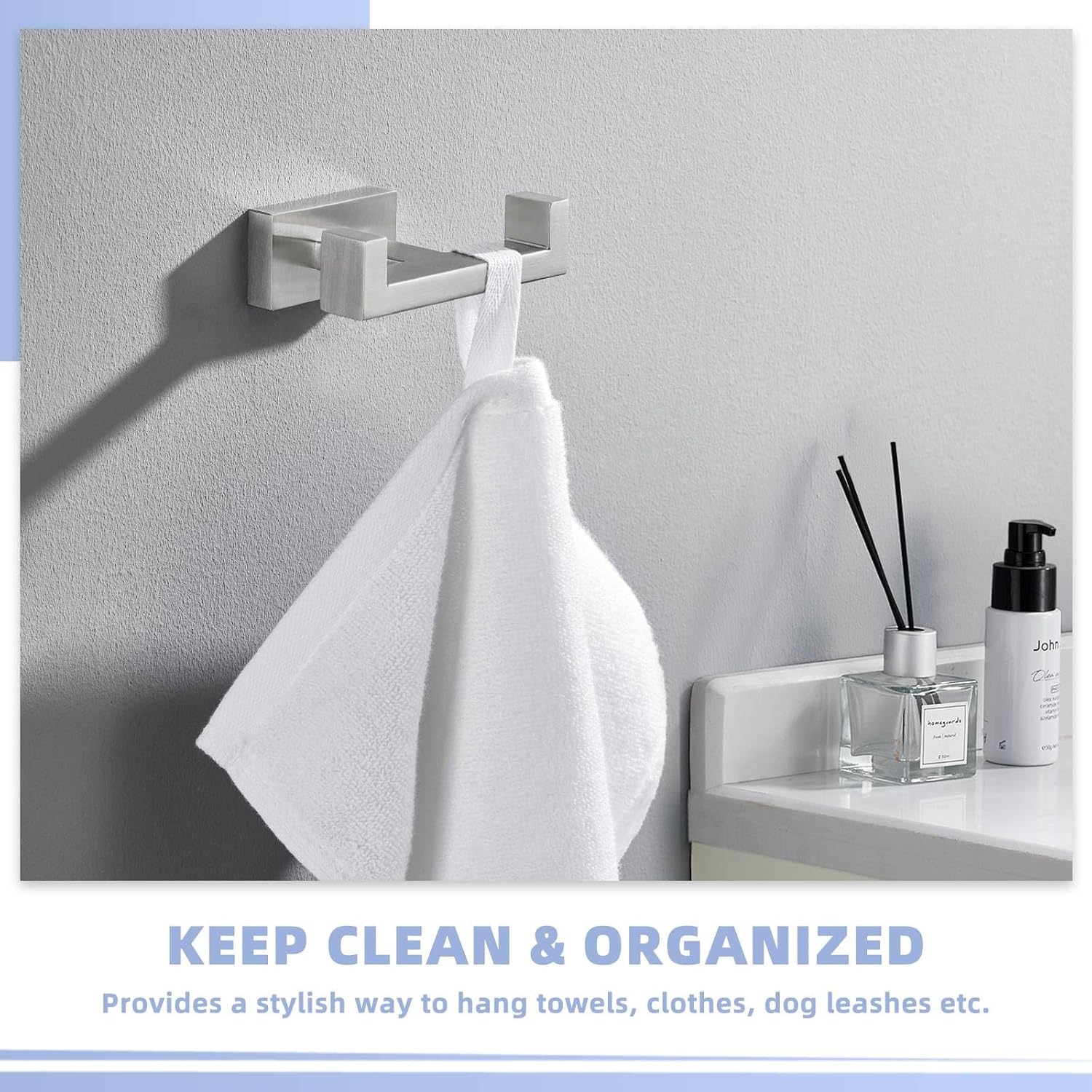 - ADDS EXTRA STORAGE: double hook holds two towels at the same time, eliminates multiple single hooks for a clean look, you could hang hand towels, bathrobe, coats, bags or other stuff on it