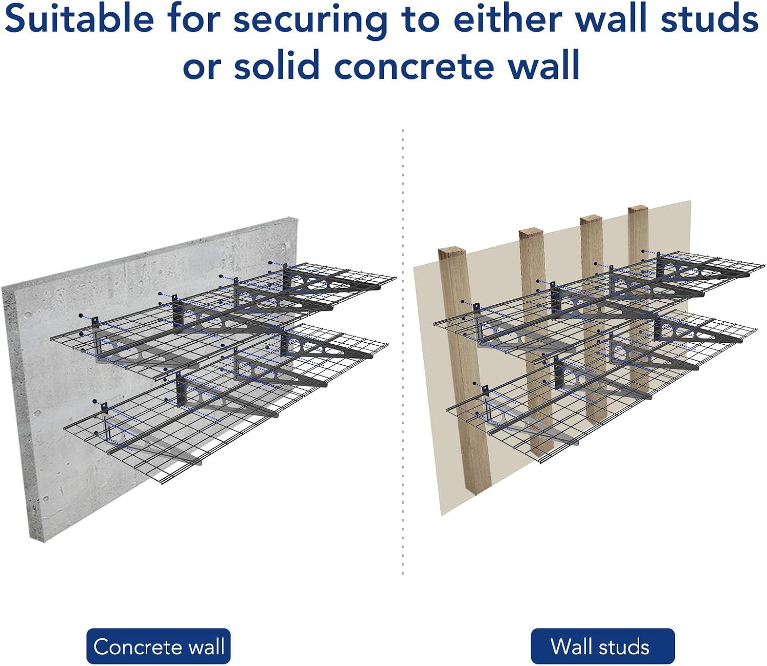 - Can NOT be mounted to metal wall. Suitable for wood studs/joists and concrete wall.