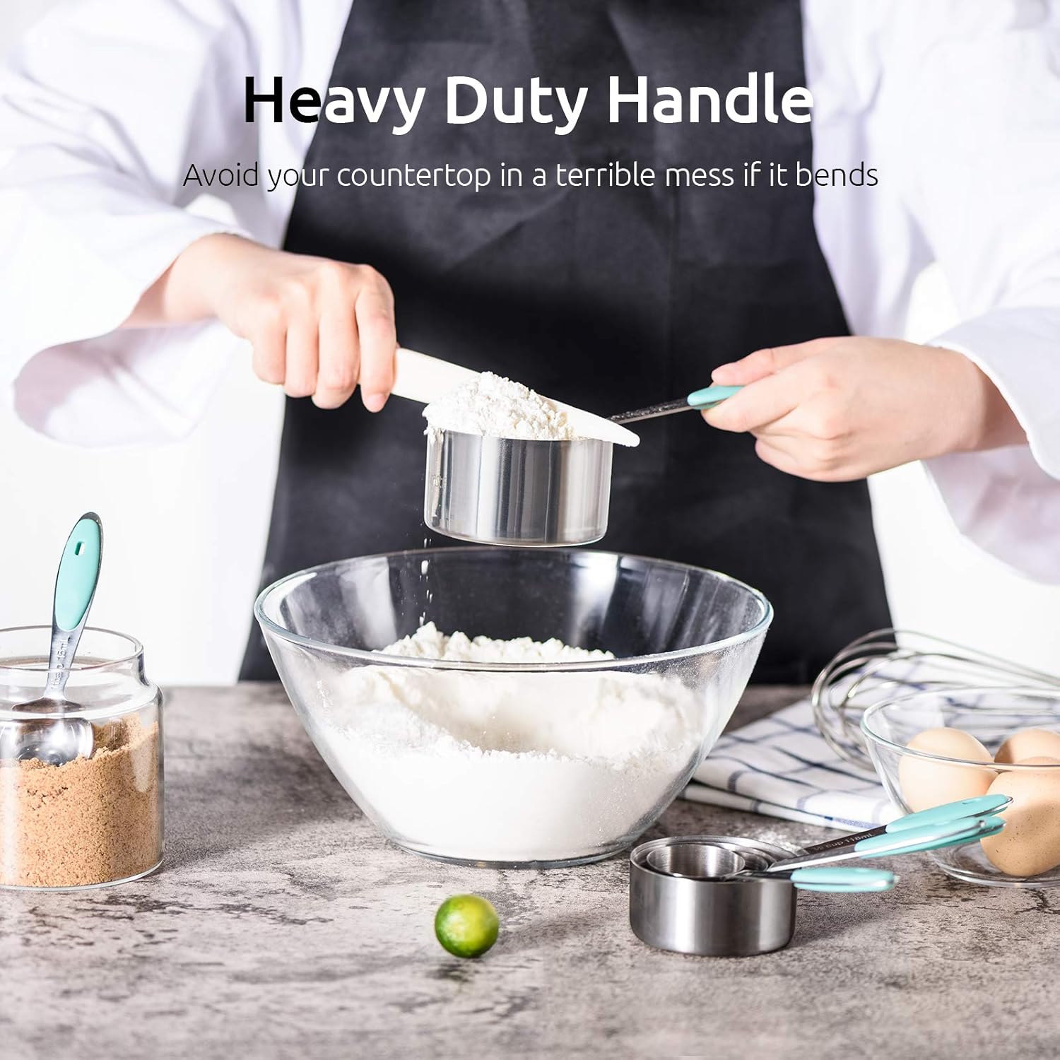 Measuring Cups : U-Taste 18/8 Stainless Steel Measuring Cups and Spoons Set of 10 Piece, Upgraded Thickness Handle(Aqua Sky)