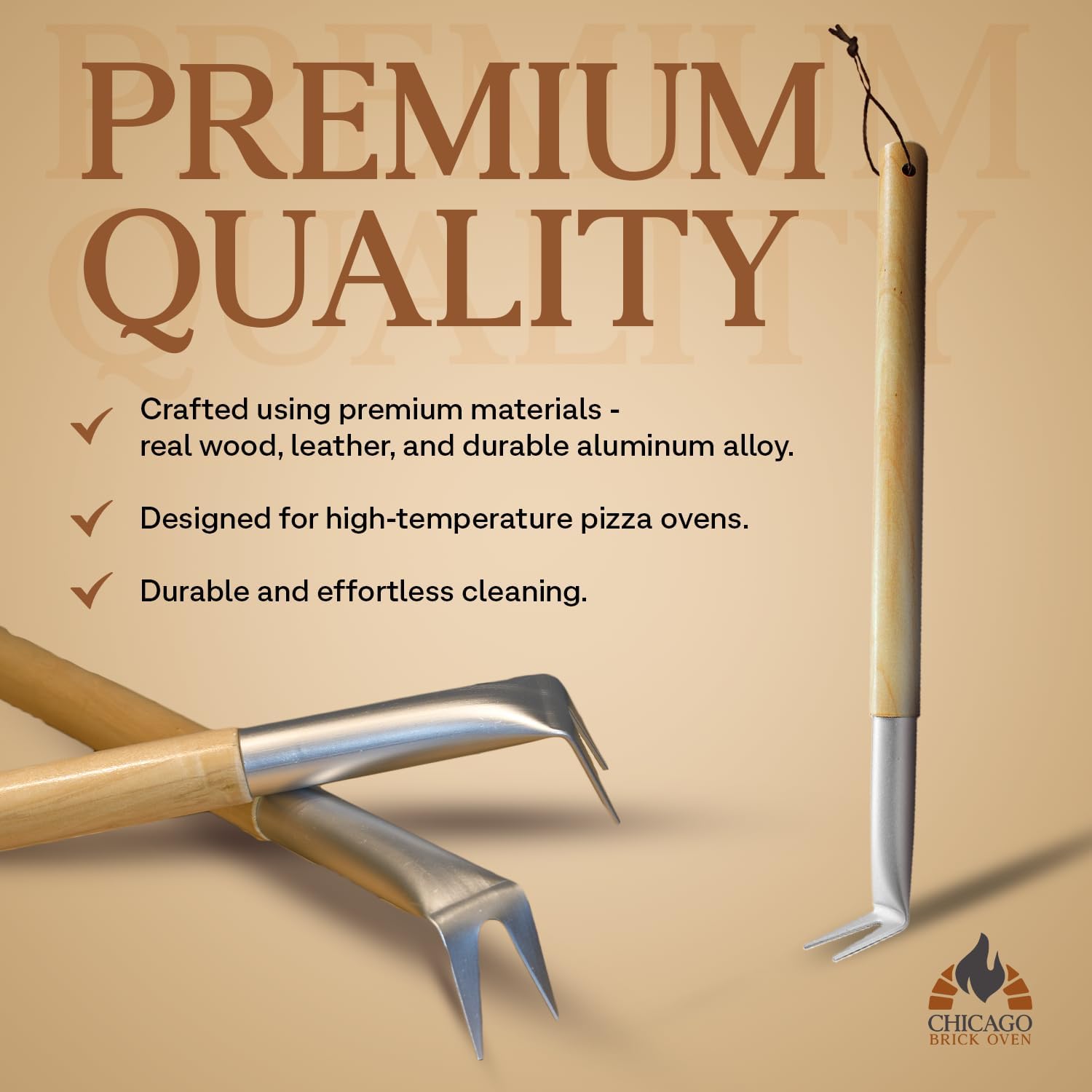 - QUALITY: Made from premium materials like real wood, leather, and aluminum alloy, our Pizza Spinner 2-Pack will be useful for endless pizza making. The thick aluminum alloy fork is specifically designed for use in hot pizza ovens, as it can both withstand extremely high heat and is easy to clean!
