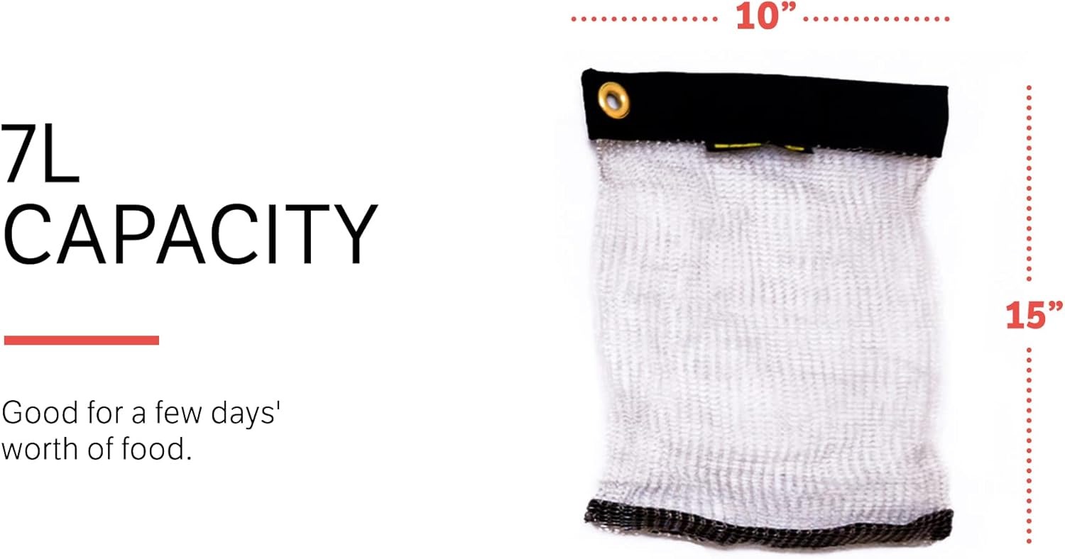 - Rodent-Resistant Food Storage – Made from heavy-duty stainless steel mesh, the RatSack Cache Bag is designed to keep rodents and small animals away from your food while camping, backpacking, or hiking. Its breathable design prevents condensation buildup, keeping food dry and fresh.