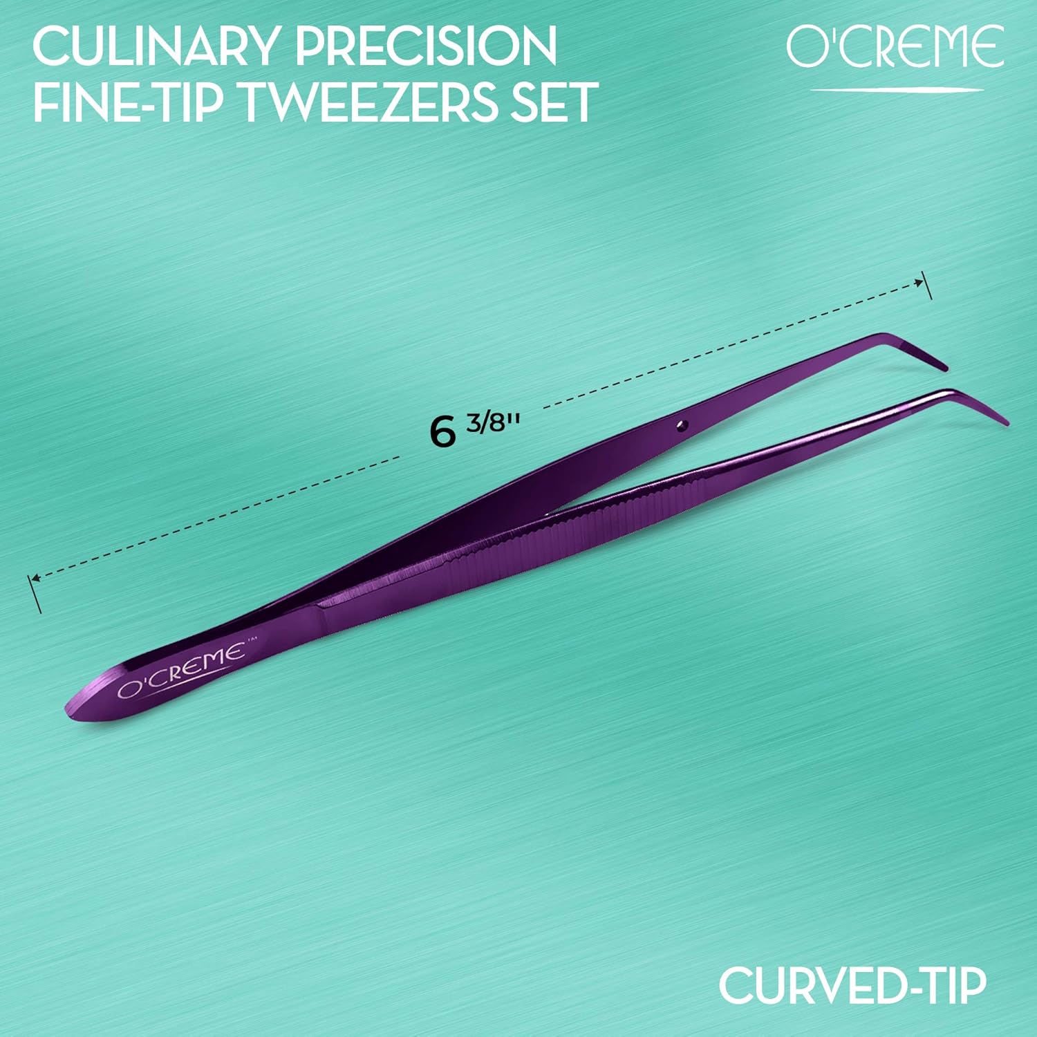 O'Creme Curved Tweezers 6.25 Inch Fine-Point Stainless Steel, Purple