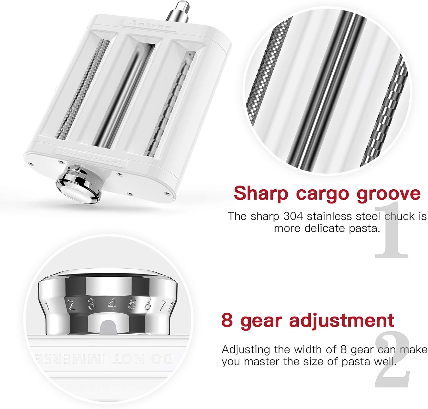 Antree Pasta Maker Attachment 3 in 1 Set for KitchenAid Stand Mixers Included Pasta Sheet Roller, Spaghetti Cutter, Fettuccine Cutter Maker Accessories and Cleaning Brush