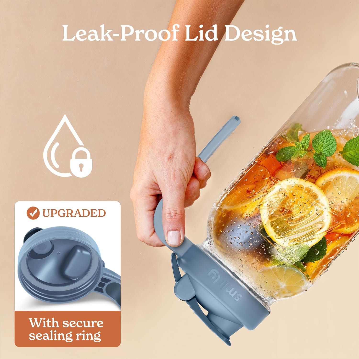- Your Total Leakproof Solution - Our glass pitcher with lid features an airtight silicone seal to keep beverages fresh and spill-free. The hanging ring on this mason jar pitcher adds convenience for easy carrying and storage.