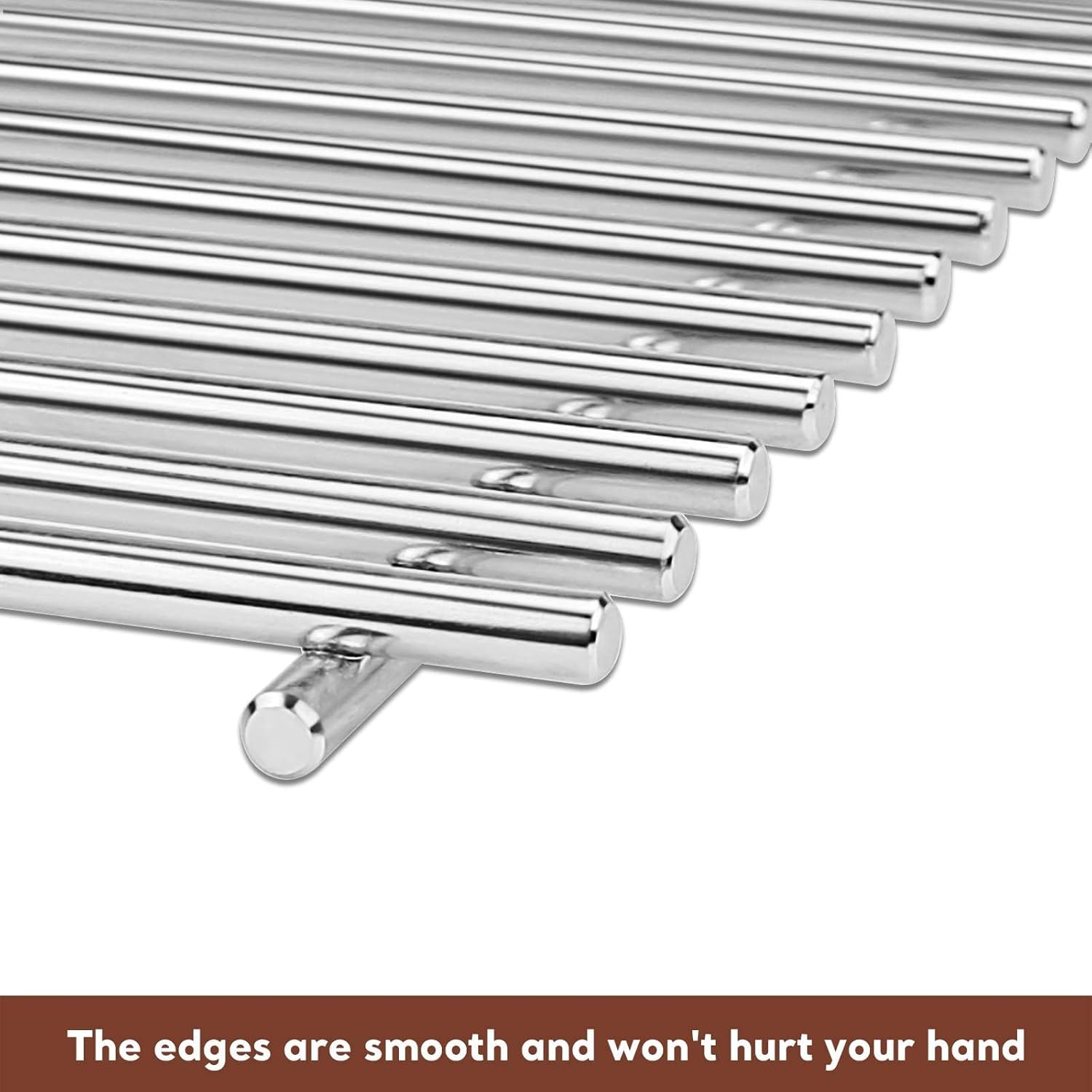 - for Weber 65619 stainless steel cooking grates, 7527 7525, 65906 grates, 7639 grill grate, 7586, 64812, 【Fits for Weber Grill Model】46510001, 47510001, 45010001, 46502001【Upgraded 7MM Solid Stainless Steel Rods】 Crafted from heavy-duty, non-magnetic stainless steel, these for Weber Spirit stainless steel grates are built to last—resistant to rust, corrosion, and high heat. The 7mm thick rods offer excellent heat retention, create bold sear marks,