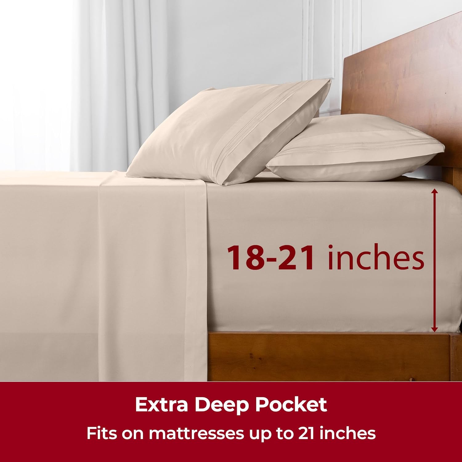 Mellanni Extra Deep King Sheets - 4 PC Iconic Collection Bedding - Hotel Luxury, Ultra Soft, Cooling Bed Sheets - Wrinkle, Fade, Stain Resistant (King, Beige)