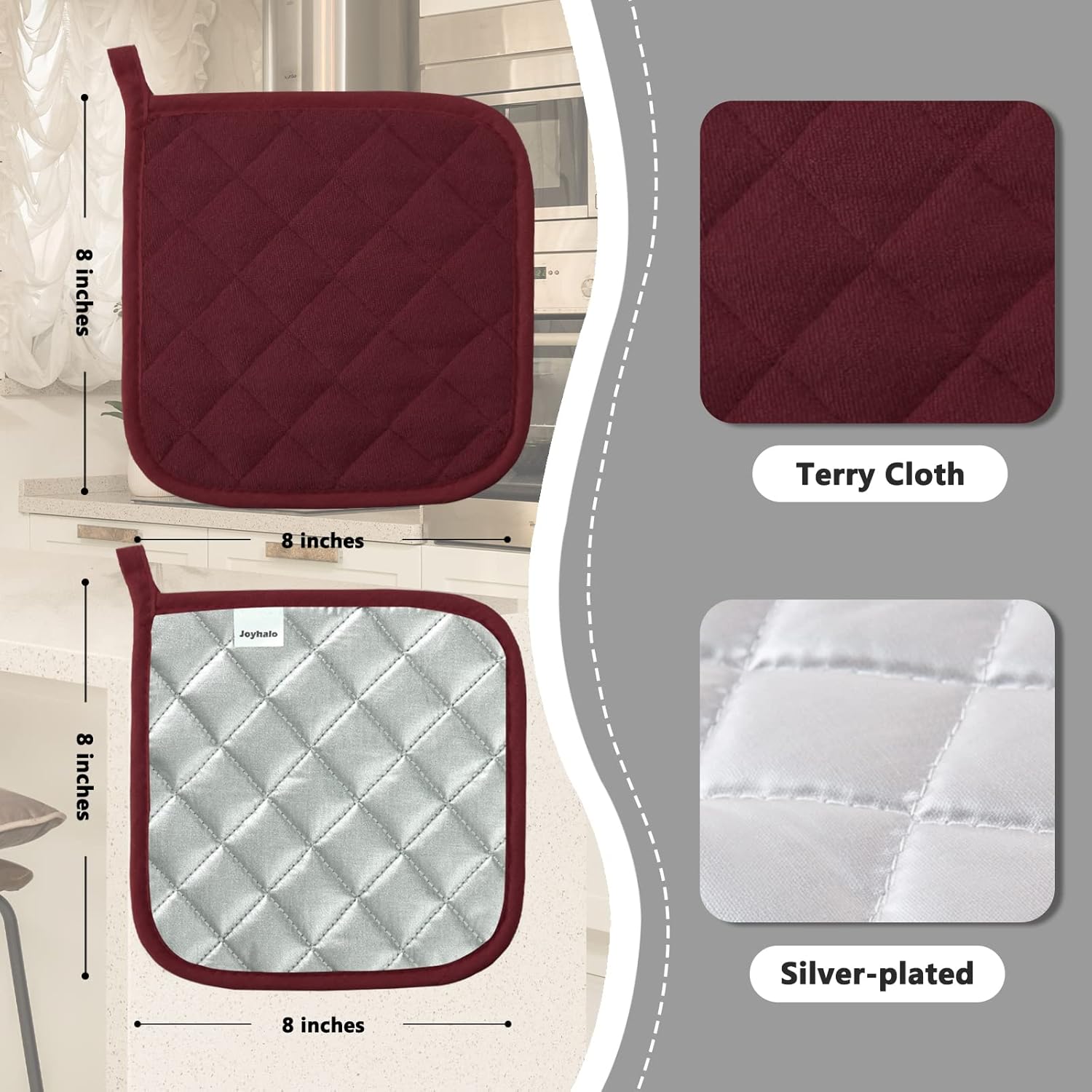 Joyhalo 4 Pack Pot Holders for Kitchen,Cotton Oven Holder with Great Heat Resistance,Non Slip Hot Pads for Kitchen Clearance,Dark Red