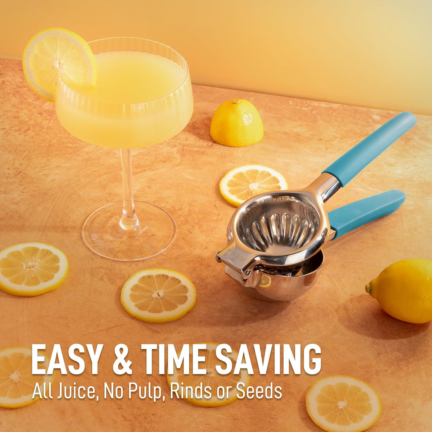 Zulay Lemon Squeezer Stainless Steel with Premium Heavy Duty Solid Metal Squeezer Bowl and Food Grade Silicone Handles - Large Manual Citrus Press Juicer and Lime Squeezer Stainless Steel (Blue)