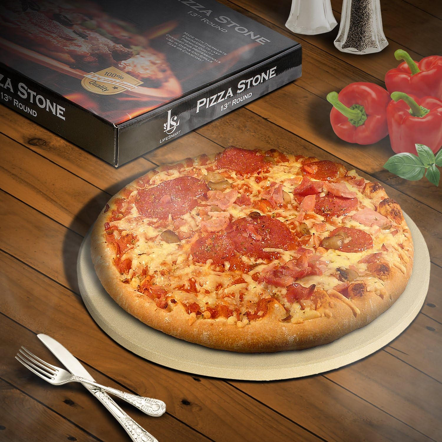 - RESTAURANT-QUALITY PIZZA FROM HOME. You don’t need to go to a restaurant or order takeout to have a delicious pizza for dinner. This pizza stone from LifeSmart absorbs moisture to create crispy crust pizzas right in your own kitchen.