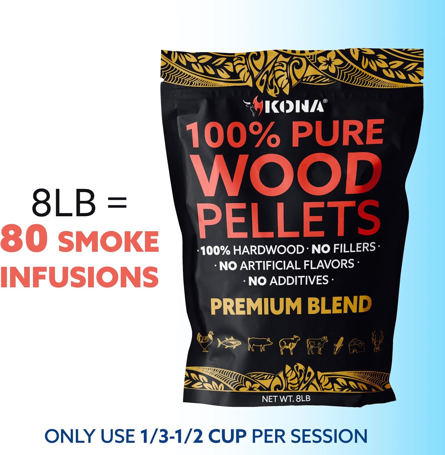Kona Premium Blend Wood Pellets - Concentrated, Pure, Old Growth Hardwood Grilling Pellets - for BBQ, Smoker Tubes, Grills - 8 lbs Our Highest Rated in Blind Taste Testing