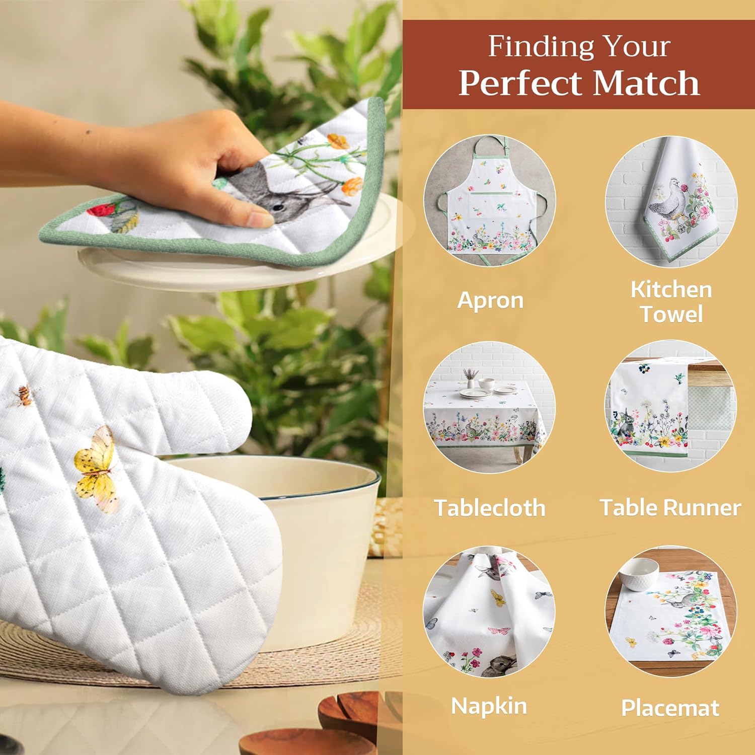 Maison d' Hermine Pot Holders 100% Cotton Heat Resistant Potholders 8" x 8" Hot Pads with Loop BBQ, Cooking, Baking, Grilling, Kitchen, Handling Hot Pans Spring/Summer (Pack of 1, Printemps)