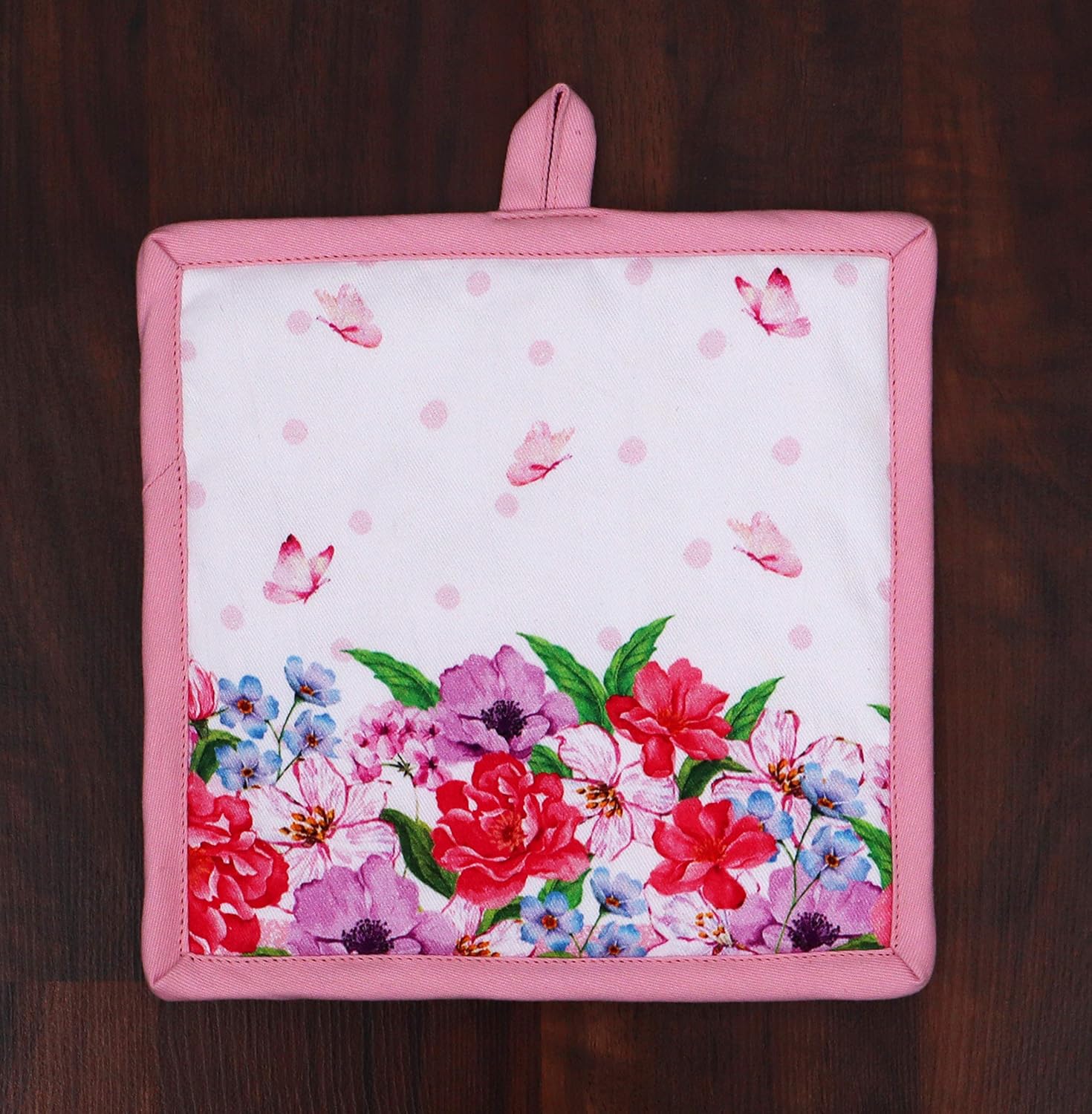 AMOUR INFINI Pot Holders Heat Resistant Cotton Set of 2 Nonslip 8"x8" Inch Hot Pads for Kitchen, BBQ, Baking & Cooking with Hanging Loops (Spring Floral)