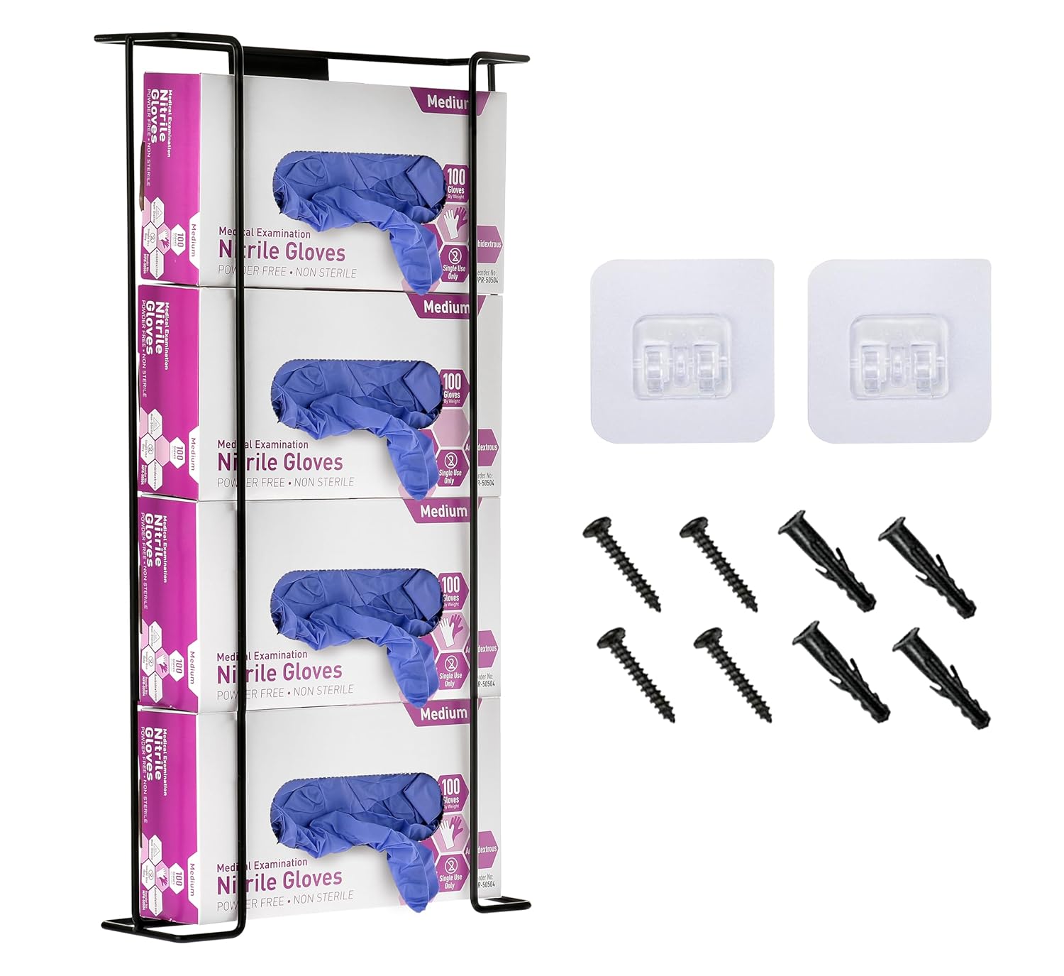 Alpine Glove Holder for Wall Mount Latex Gloves - Wire Box Dispenser for Disposable Gloves, Tissues, Masks, Wipes & More - Fits 4 Boxes (Black)