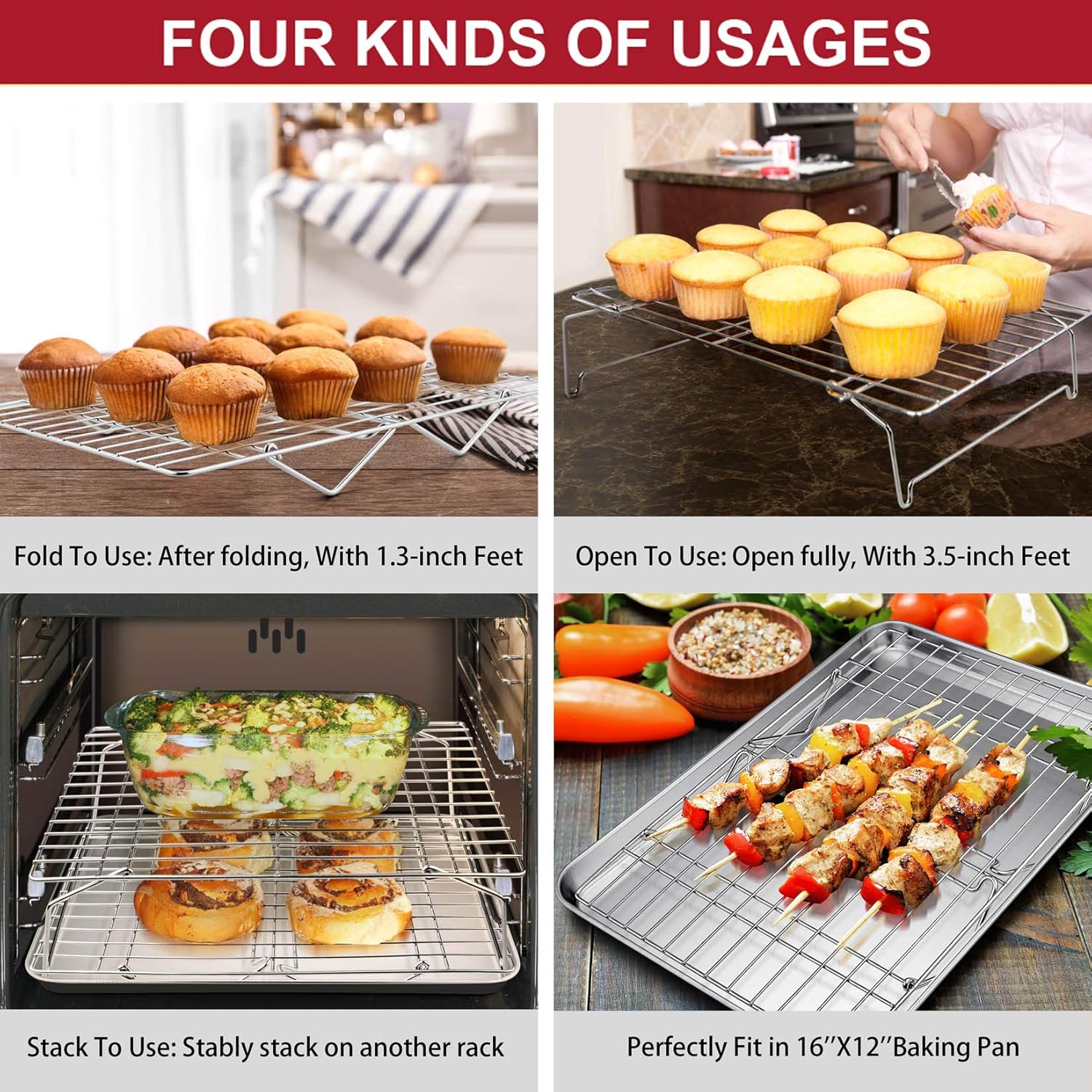 - 【OVEN & DISHWASHER SAFE】 Elevated feet and equidistant wires promote optimal air circulation to quicken the baking and cooling process, Perfectly fit most regular oven for baking and roasting, Dishwasher safe to save your cleaning labor and reduce the hassle after using, Also hand-wash easily