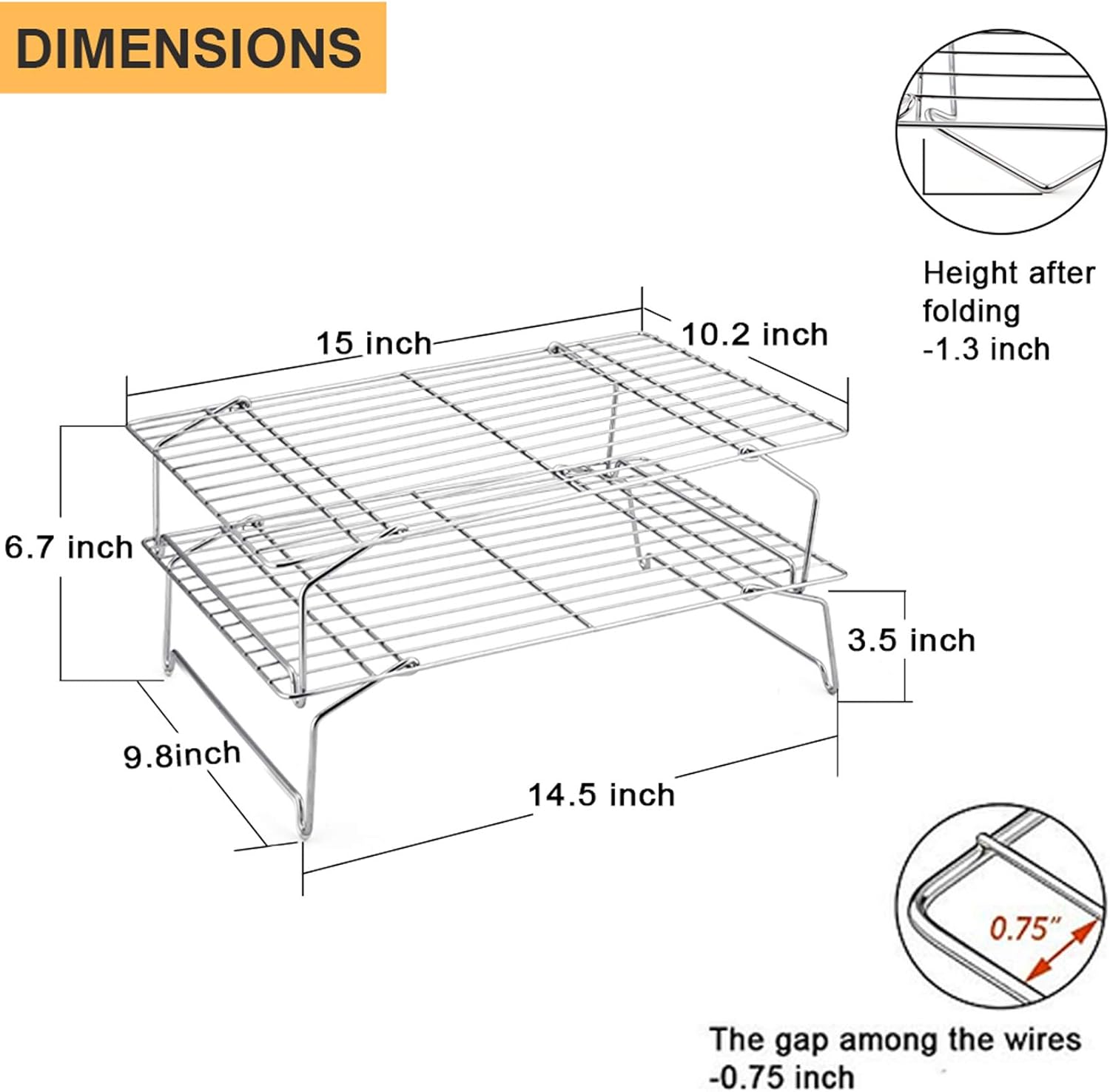 P&P CHEF Cooling Rack Set of 2, 2-Tier Stackable Stainless Steel Wire Racks for Baking Cooking Cooling Roasting, Collapsible & Heavy Duty, Oven Safe & Easy Clean, 15" x 10", Silver
