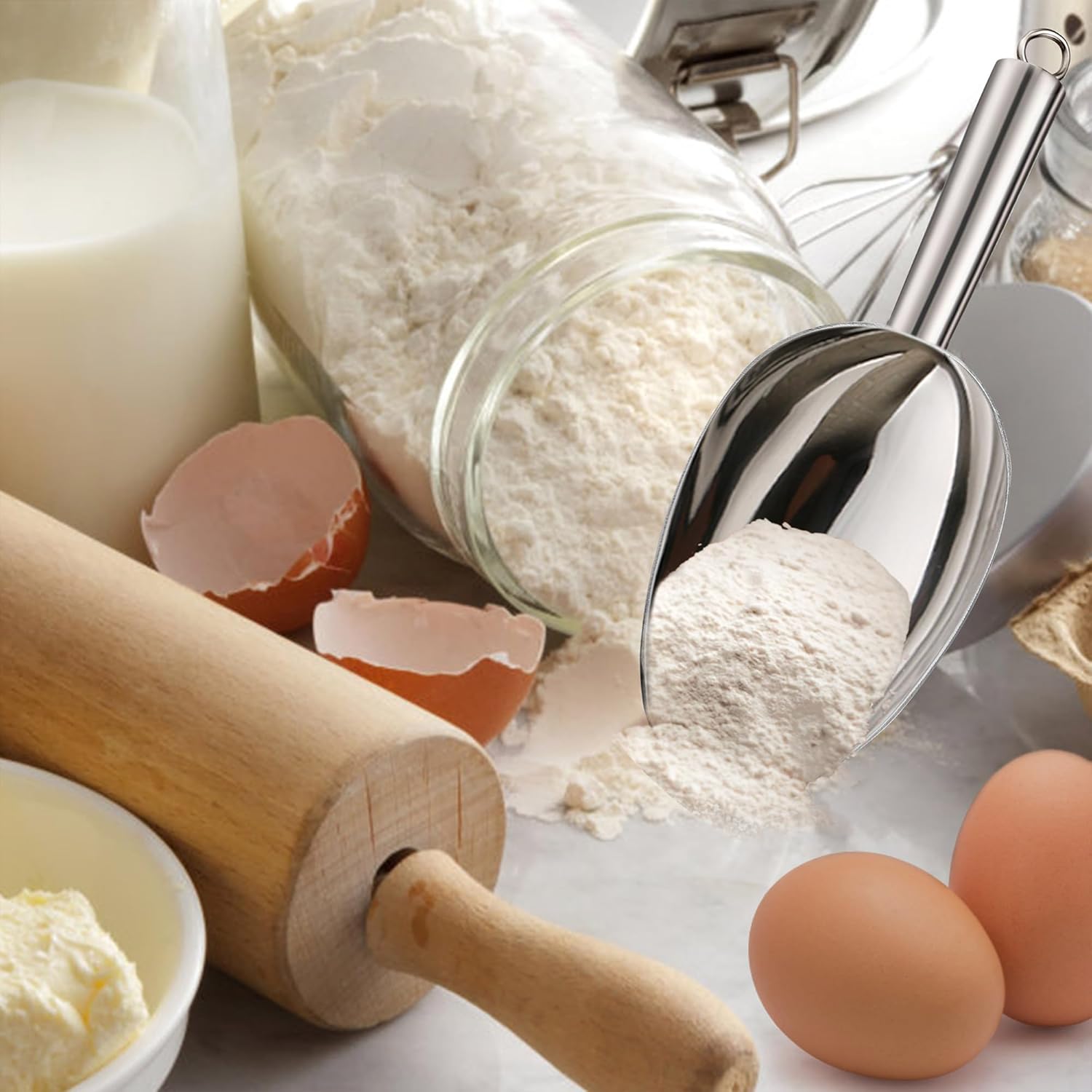 - Versatile: 8 oz capacity metal scoop, Overall length 9.3 inch, Bowl Measured 5.8’’ L x 3.5’’ W x 1.7’’ H, Ideal for scooping ice cubes, candy, coffee beans, flour, Also could be used as dog cat food scoop, Meet all your requirements