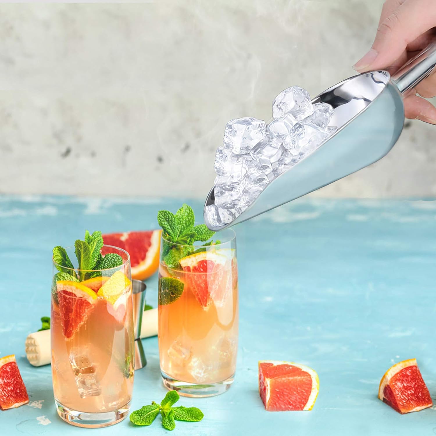 - 【HIGH QUALITY】 P&P CHEF ice scoop is constructed by pure stainless steel, Rust-free and will not get mouldy, Healthier than wooden scoops, With thick rim, no worries about breaking or deforming, Durable for years