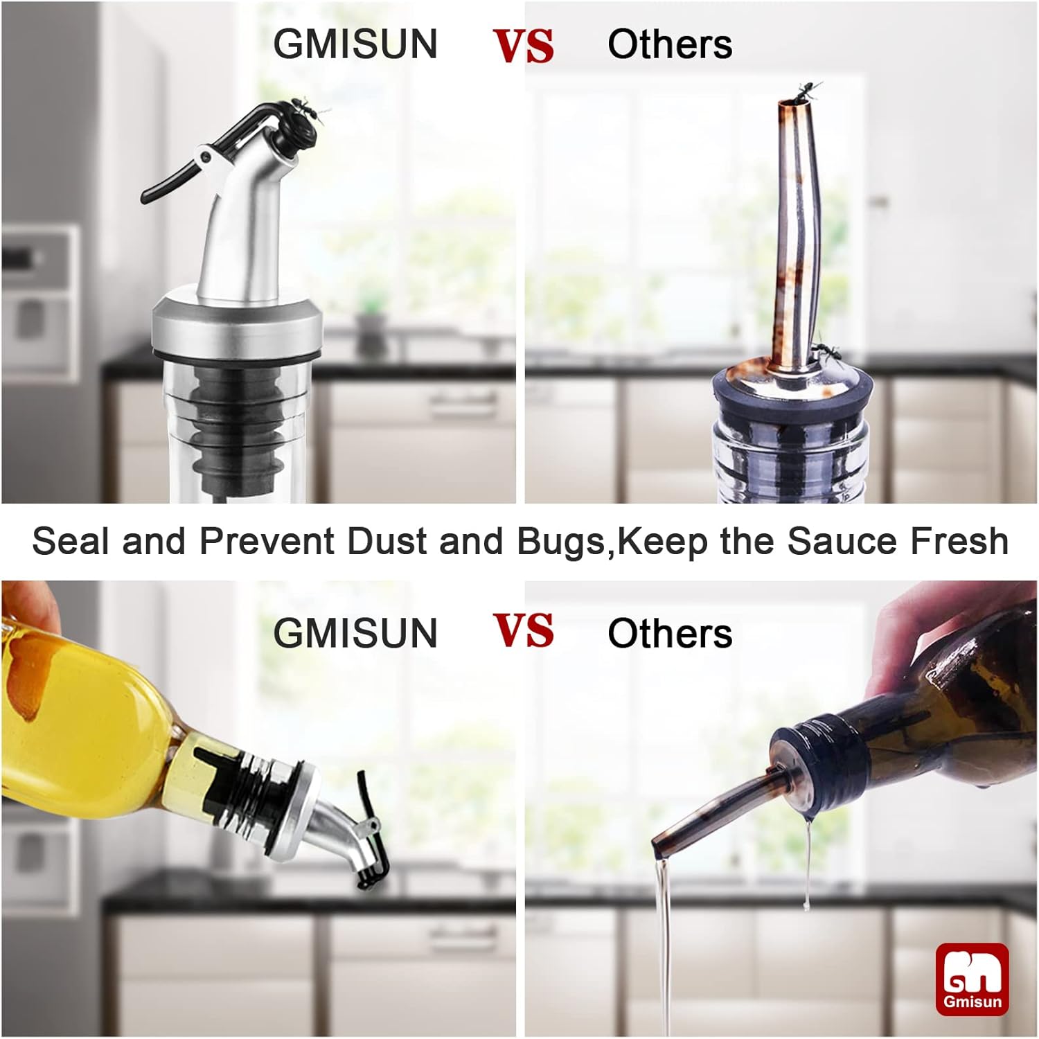 - VALUABLE OIL DISPENSER FOR KITCHEN: GMISUN is devoted to oil dispenser for kitchen for years, and it can provide high-end and considerable oil bottle. This oil bottles for kitchen comes with 8 cooking oil dispenser, 3 plastic flip spouts, 4 preprinted labels, 4 blank labels, and a wide-open funnel. It can meet your daily sauces needs such as olive oil, cooking oil, vinegar, cooking wine, soy sauce, etc.