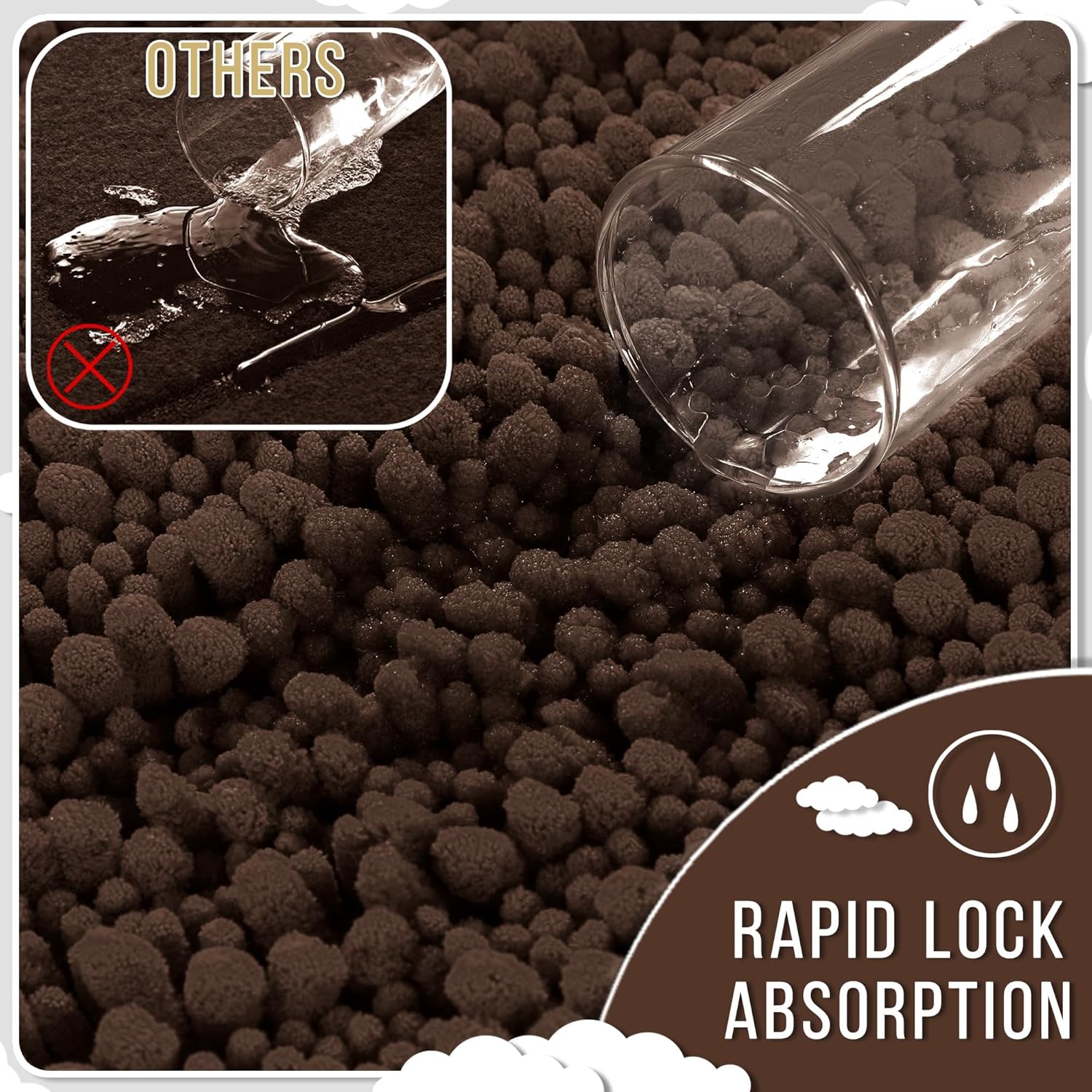 Yimobra Bathroom Runner Rug 55x24 Inch - Extra Long Non Slip Chenille Bath Mat, Soft & Absorbent, Machine Washable Shaggy Hallway Carpet for Vanity Tub Shower, Brown Home Decor Accessories