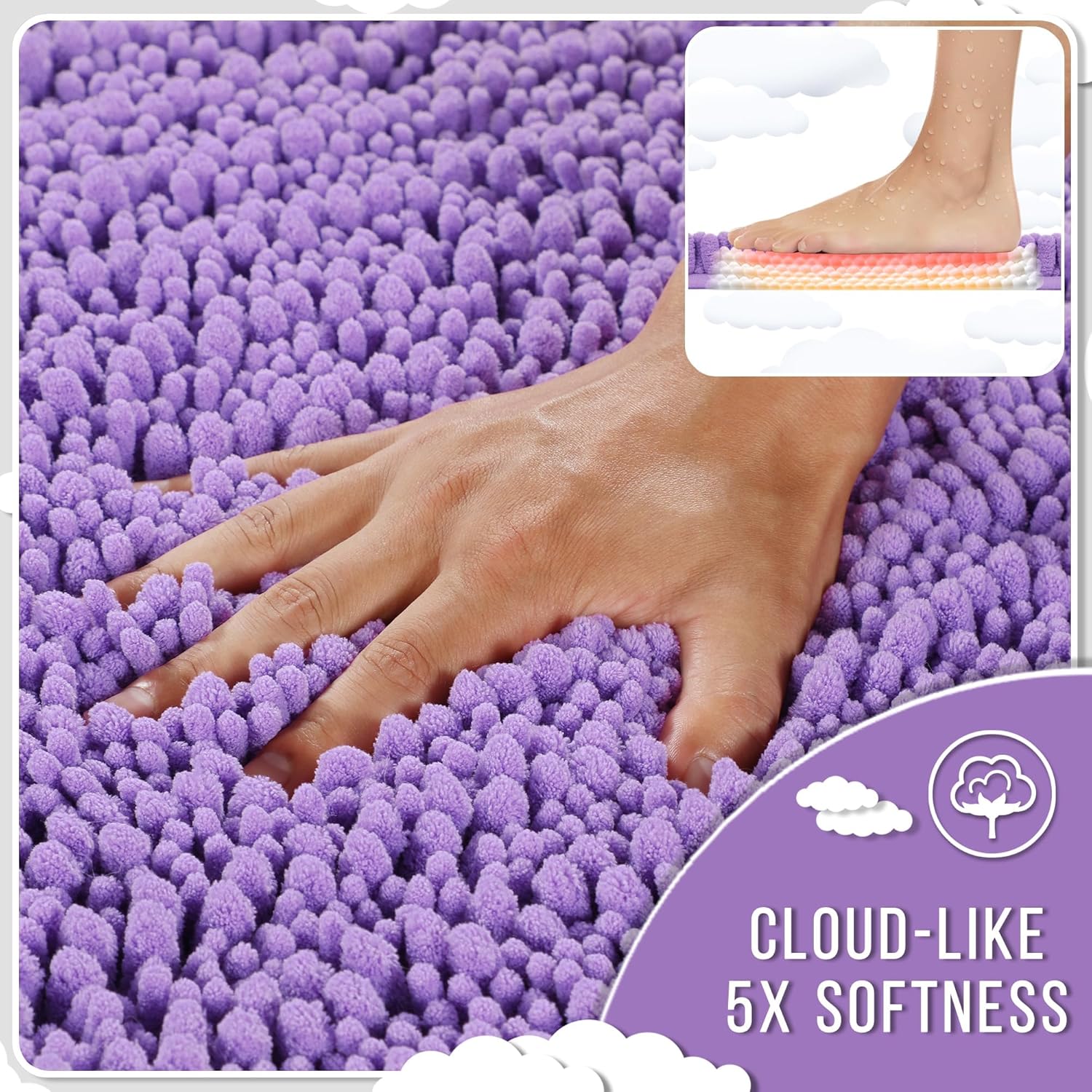 Yimobra Large Bathroom Rugs Non Slip Washable 36x24 Inch - Ultra Soft Absorbent Chenille Bath Mat, Quick Dry Shaggy Floor Carpet for Tub Shower, Lavender Home Decor Accessories