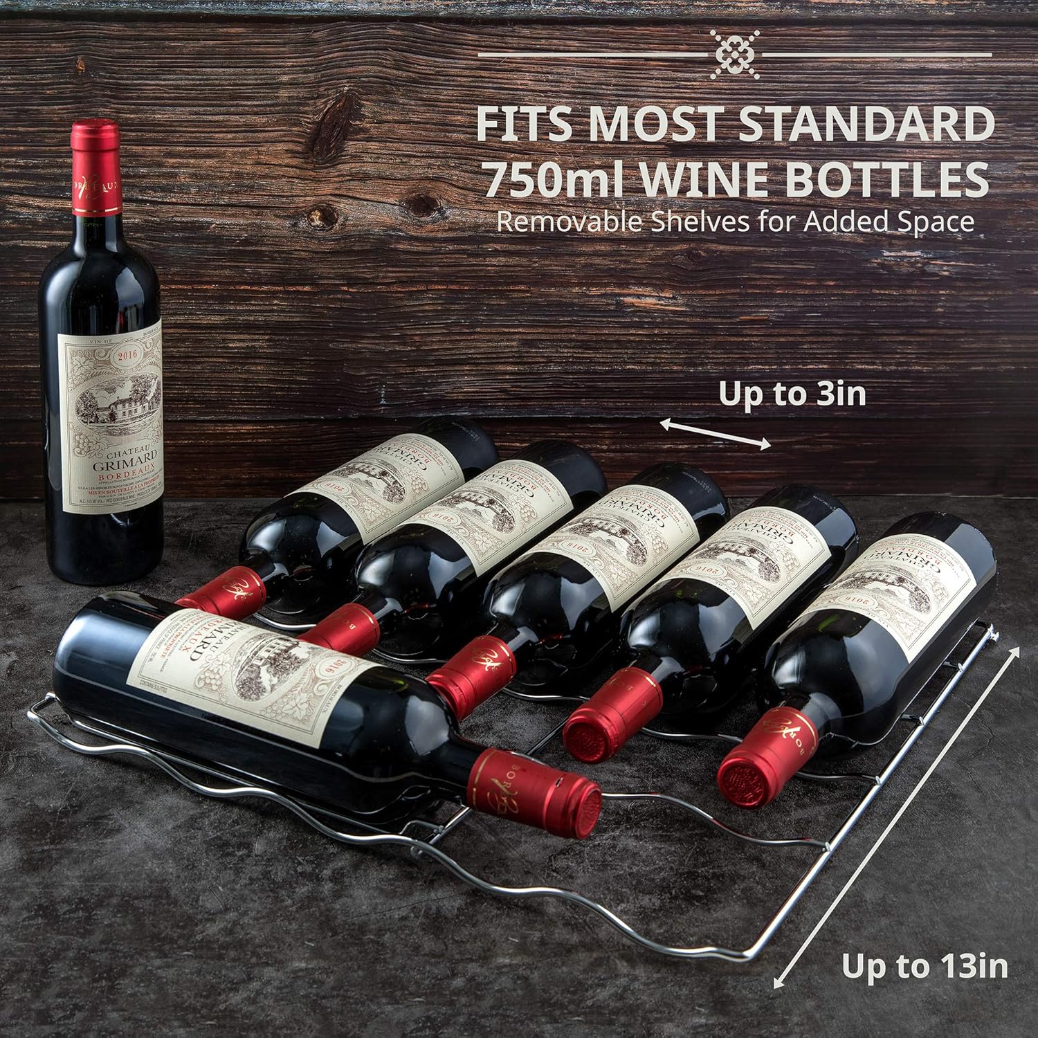 - REMOVABLE RACKS & EASY-TO-USE TOUCH CONTROLS - Rearrange the shelves to accommodate varying bottle sizes. From pinot noir to champagne, you can be sure your collection ages comfortably. Easily adjust the temperature and turn on the light by tapping the digital display, then easily lock in settings with the lock button. The bright LCD display lets you view the temperature, even in the dark.