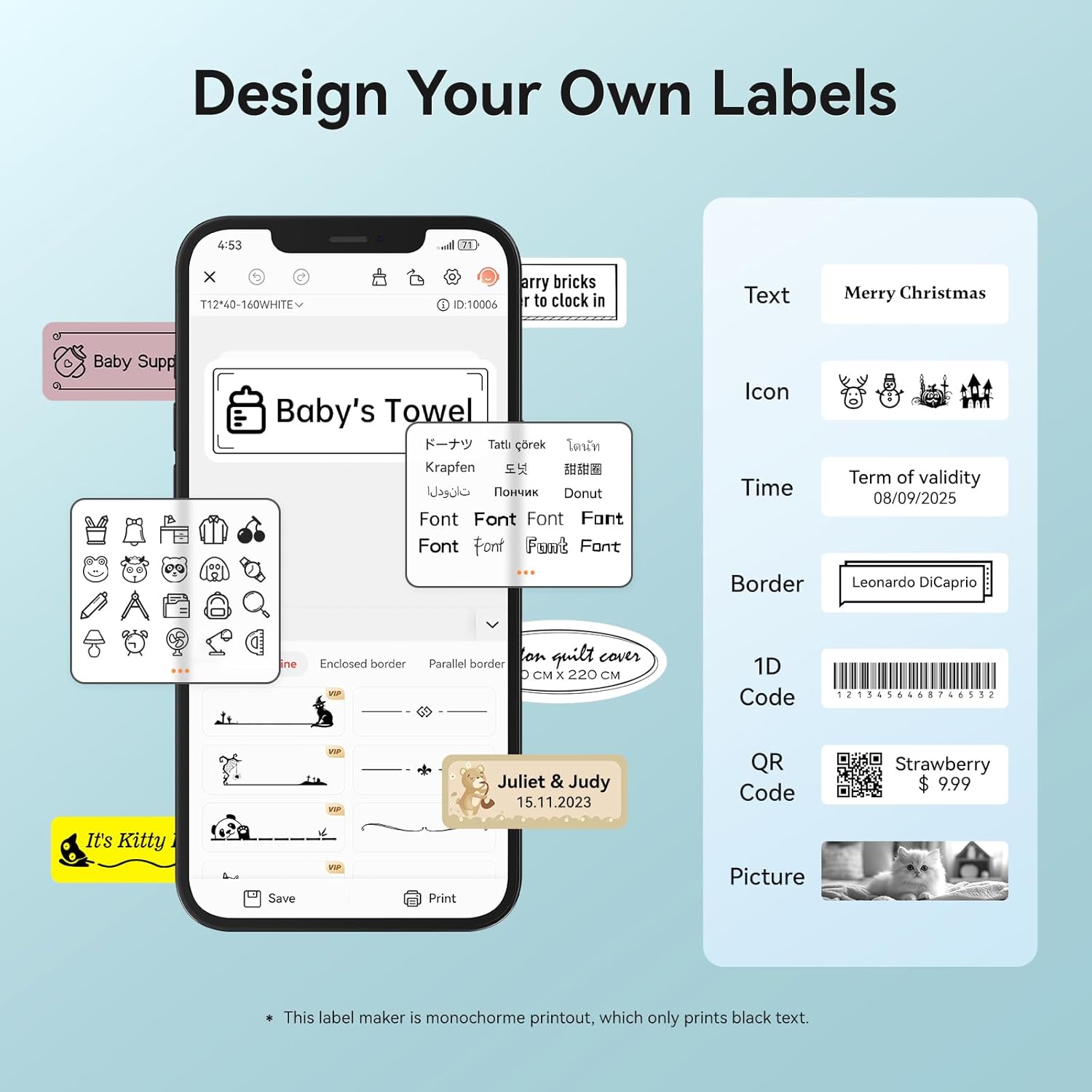 - 【Design Your Own Labels】The APP NIIMBOT contains various texts, graphic symbols and business icons,and our label paper has varieties of colors and styles to choose from, You can make your own product labels and QR code labels.