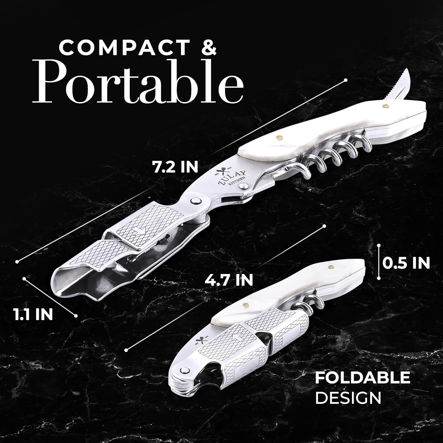 Zulay Kitchen Corkscrew Wine Opener - Premium 420 Stainless Steel & Resin Wine Bottle Opener - Double Hinged Opener with Foil Cutter & Cap Remover - Resin